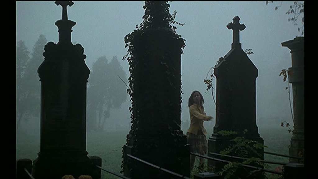 Beaucoup considèrent La Rose de Fer comme étant le film le plus personnel de Jean Rollin, et également comme étant son meilleur film, son chef d’œuvre. Difficile de ne pas leur donner raison, et ce dès la sublime scène d’ouverture, où l’on découvre Françoise Pascal sur une plage bien connue des fans de Rollin, caressant une rose de fer déposée là par les vagues, le tout sur une musique douce et poétique de Pierre Raph. Les moments suivants, servant à mettre en place les deux personnages principaux, s’avèrent pourtant moins prenant, mais toujours poétique, notamment grâce au hasard, puisqu’en se levant un matin pour tourner dans une gare abandonnée, l’équipe trouvera une épaisse brume sur les lieux. Brume donnant un aspect surréaliste, poétique, coupé du temps. Nos personnages évoluent, coupés du monde, coupés du temps, et se retrouvent alors dans le cimetière.