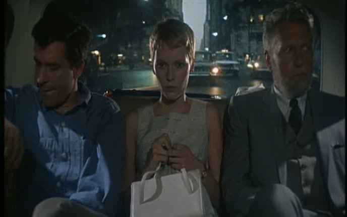 Avec ces personnages simples, Polanski prend le temps de poser les bases de son récit et de ces personnages, prend le temps pour que nous fassions leur connaissance, nous sentons proche d’eux, avant petit à petit de briser la fine ligne qui sépare la routine de l’étrangeté, pour plonger ses personnages dans la paranoïa et la folie. Pari réussi, encore aujourd’hui, le film fait preuve d’un rythme lent mais hypnotique parfaitement maitrisé dans sa première partie, avant de plonger dans une ambiance beaucoup plus sombre et oppressante. Peut-être un peu moins oppressant que son Répulsion (l’utilisation du noir et blanc y était peut-être pour quelque chose), mais fonctionnant à merveille tout de même. Petit à petit, les voisins se font envahissants, posent des questions étranges, se font trop curieux, et là, c’est le drame, un beau matin, Rosemary est enceinte. À partir de là, c’est une descente vers la folie à laquelle le réalisateur nous invite, et dans laquelle il plonge totalement son personnage féminin. Tout comme elle, nous sommes perdus, nous ne savons plus ce qu’est la réalité, le rêve, ou plutôt le cauchemar, qui dit la vérité et qui complote et ment.