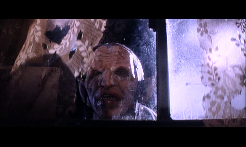 Le Nain Tracassin raconte l’histoire d’une fille d’un paysan qui prétend que cette dernière peut transformer la paille en or. Enfermée dans une pièce remplie de paille sans être capable de faire ce que son père a affirmé au roi, un nain apparaît et lui propose de faire le travail à sa place en échange d’un dû : son futur bébé, à moins qu’elle ne réussisse à deviner son nom en moins de trois jours. Rumpelstiltskin, c’est une sorte de variation car ici, le nain voleur d’âme de bébé est prisonnier d’une pierre magique qu’achète une femme, chez une antiquaire un peu sorcière sur les bords, qui vient de perdre son mari dans un braquage qui a mal tourné, en plus d’avoir accouché de leur enfant dans la foulée. Ce Rumpelstiltskin, appelons-le Rumpi, diffère de l’original dans le sens où il accorde un seul et unique vœu en échange d’un bébé, ce que la jeune maman ignorait au moment où elle a souhaité que son défunt mari revienne d’entre les morts pour voir son enfant juste une fois, libérant ainsi Rumpi de son sommeil. Dans sa structure, Rumpelstiltskin ressemble à Leprechaun : mis hors d’état de nuire dans la scène qui ouvre le métrage qui expose d’emblée les enjeux puis libéré bien plus tard par accident, même taille (un peu plus grand ceci-dit), même sens de l’humour parfois marrant mais aussi parfois vaseux, même obsession pour ce qu’il vient réclamer, même manie à s’en prendre plein la gueule, super pouvoirs qu’il n’utilise aléatoirement, ou jamais quand il le faut parce que sinon, il n’y aurait pas de film… le moule est clairement le même, avec quelques différences tout de même tel un look plus rock et la manière de se débarrasser de la menace un peu plus compliquée puisque non seulement Rumpi, il faut le cramer dans de la paille mais il faut aussi prononcer son nom trois fois. Et question nom d’enfoiré à prononcer, Rumpelstiltskin se pose là, personnellement j’ai tendance à oublier le t entre le l et le s, et vous, vous y arrivez ? Mais, Mark Jones ne fait cependant pas dans la photocopie, on parlera plus ici de copie de fond, et y injecte une autre inspiration évidente car pourquoi pas mettre un peu de Terminator dans son Leprechaun tant qu’on y est.