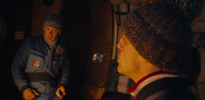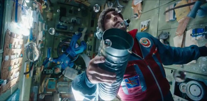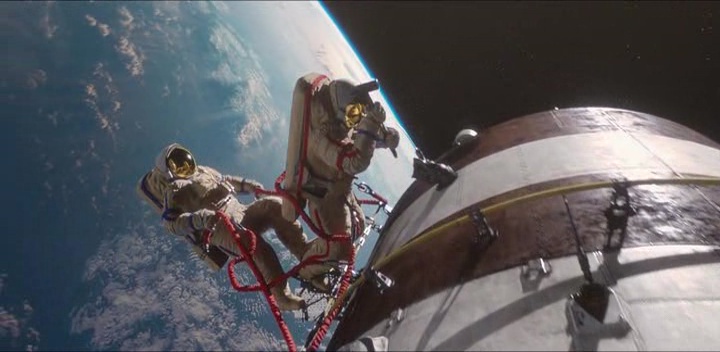 Absence de courant, température ultra basse, de l’eau partout. Ils vont avoir du boulot, et fort heureusement, les deux acteurs principaux, Vladimir Vdovichenkov et Pavel Derevyanko font un excellent boulot, autant dans les moments de tension (l’incendie qui se déclare, l’oxygène qui commence à manger, des hallucinations) que dans les moments un peu plus légers pour permettre aux personnages de souffler. Des moments parfois tout simples comme le partage d’une bouteille à bord où la contemplation de la terre depuis l’espace, accrochés à la station, fonctionnent super bien et donnent un peu d’épaisseur aux personnages, et surtout une belle part d’humanité, rappelant encore une fois que c’est l’humain qui est au centre de l’intrigue et non pas les prouesses techniques de l’équipe des effets spéciaux. Du coup, malgré quelques maladresses ou certains moments un peu gros il est vrai, les 1h50 passent à la vitesse de l’éclair, avec un peu de tension mais pas trop, un peu de drame et de patriotisme mais pas trop. En fait oui, je reviens là-dessus, mais c’est vraiment dommage pour la musique qui en fait des tonnes et paraît donc parfois inadaptée pour le métrage… Mais bon, je chipote, encore…