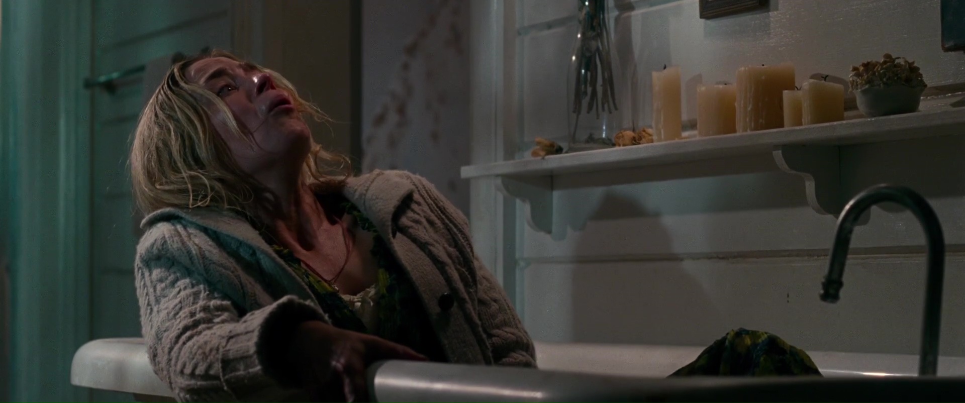 Le passage dans la forêt juste derrière d’ailleurs fonctionne à merveille. Et tout ce qui s’ensuit fonctionne également à merveille, avec le monstre dans la maison, l’accouchement, les enfants perdus dehors. Même si le métrage laisse alors peu à peu la musique l’envahir (bande son parfois assez bruyante de Marco Beltrami), l’ensemble fonctionne encore et délivre quelques moments de tension hyper bienvenus. Jusqu’à ce que l’on atteigne les 10 dernières minutes du métrage, qui semble alors effectuer un virage à 180 degrés l’éloignant de ses ambitions de départ pour partir dans une direction un peu plus bruyante, mais également plus musclée et qui oublie par moment le réalisme. Alors oui, le réalisme limite, pas bien grave, après tout nous somme dans un film de genre avec des monstres, donc passons sur certaines facilités scénaristiques ou autres. Mais le métrage, comme tout métrage de genre se respectant, doit alors en donner un peu plus au spectateur dans son dernier tiers, et parfois, A Quiet Place le fait très bien (le passage dans le champ de maïs), et parfois, beaucoup moins bien. Mais si ironiquement, ces moments un poil plus musclés fonctionnent encore, A Quiet Place nous montre sa pire petite faille seulement 3 secondes avant son générique de fin, avec un plan final too much et légèrement déplacé comparé à tout ce qui précédait, et surtout comparé au personnage en question. Un plan poseur et iconique qui semble même venir d’un autre métrage. Un peu comme si le réalisateur, dans son envie de proposer un final qui se bouge plus que le reste du métrage, n’avait pas su où se situait sa limite. Alors oui, c’est dommage, et certains autres éléments sont dommages également, mais au final, rien qui ne gêne vraiment la vision du dit métrage, qui est et restera une excellente surprise de cette année 2018.