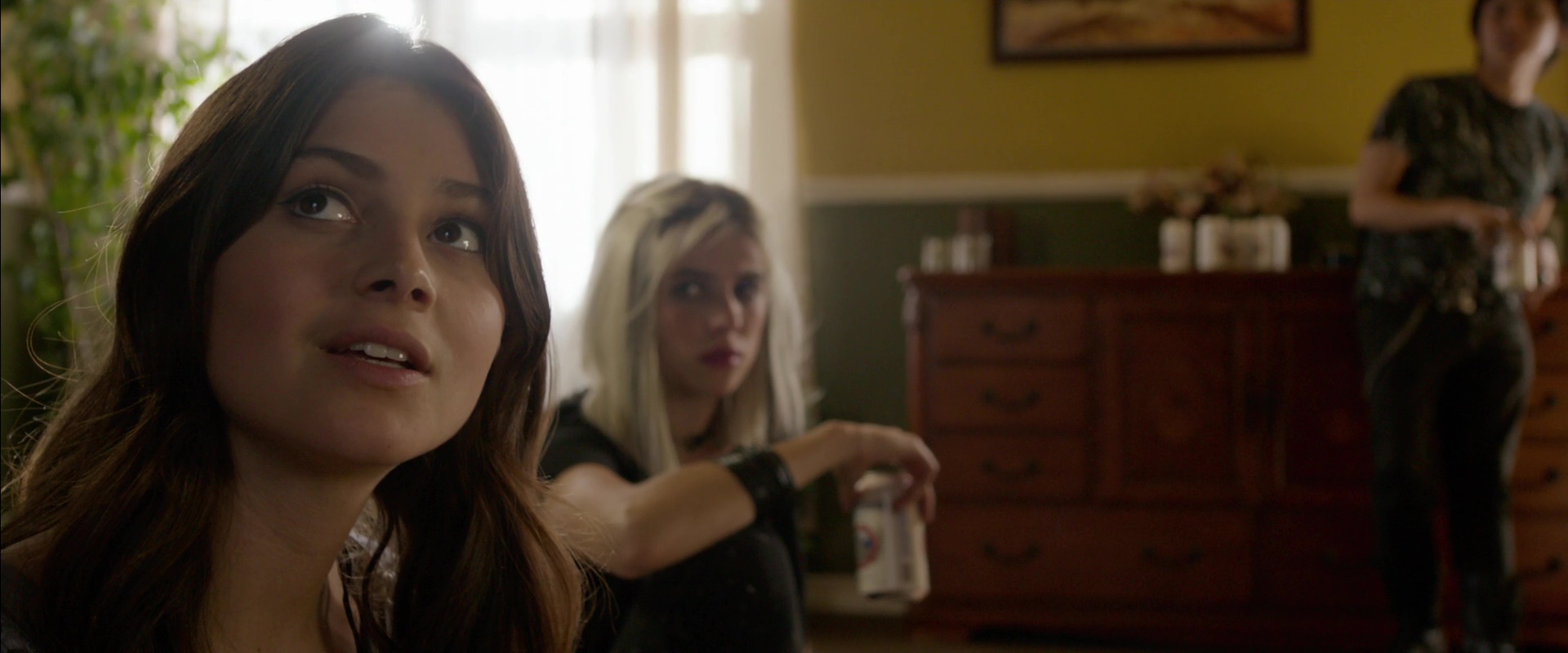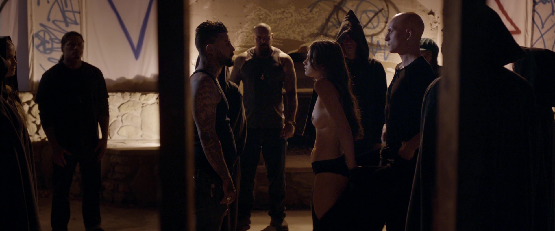 On aura donc les deux passionnés de satanisme, l’amie qui suit le groupe, le petit ami qui lui ne croit pas à tout ça et n’y a aucun intérêt, une petite référence fatalement à un des meurtres sataniques les plus connus de Los Angeles (oui, Sharon Tate), un groupe satanique un peu bidon, et forcément, une jeune femme perdue qui va amener un élément qui tournera mal et va amener, on s’en doute, des éléments étranges, des meurtres, le diable quoi. Satanic ne brille pas d’un scénario ingénieux, ni original d’ailleurs, mais il reste, dans sa narration, plutôt solide. Au niveau des personnages par contre, rien de bien extraordinaire, quelques clichés, et surtout des caractéristiques parfois oubliées car plus nécessaires pour l’histoire (ou juste oubliées par le scénariste). L’exemple le plus flagrant étant David, sans doute de base le personnage le plus intéressant, puisque ne croyant pas à tout ça, étant juste là pour suivre sa petite amie. Il ne croit pas aux cultes sataniques, ne montre que peu d’intérêt à tout ça dés le départ, puis, intrigue qu’il faut faire bouger oblige, il sera un des premiers finalement à accepter d’espionner un culte tandis que sa petite amie sera contre. Pourquoi ? La magie de l’écriture ! Dommage car en soit, les acteurs ne sont pas mauvais.