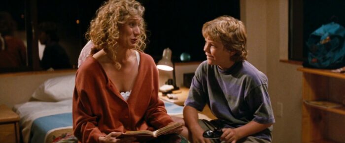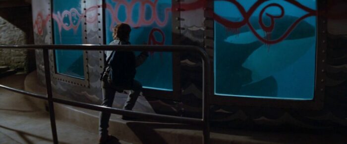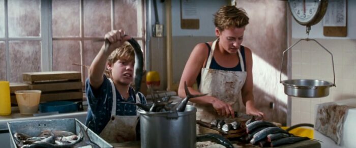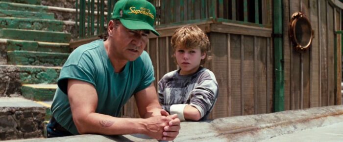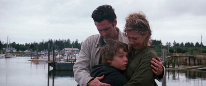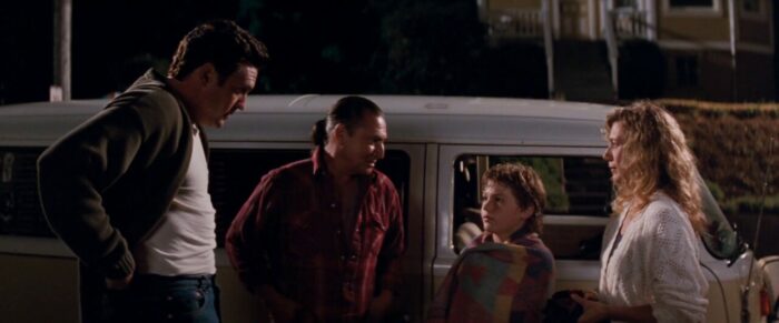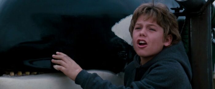Sauvez Willy raconte donc l’histoire d’amitié entre un garçon de 12 ans et un épaulard. L’enfant a été abandonné par sa mère et le cétacé a été arraché à sa famille pour être maintenu en captivité dans un parc aquatique. Pour justifier le fait qu’ils deviennent potes, le film ne mise pas sur l’ intelligence de l’orque mais sur un aspect mythologique. Si Willy ne se laisse approcher et apprivoiser par personne sauf le petit Jesse, c’est parce que l’orque a su lire dans son âme et y trouve un être qui comprend sa souffrance. Et il a de la chance Jesse de pouvoir être ami avec Willy, il serait tombé sur Tilikum qu’elle l’aurait direct choppé par le bras pour l’emporter sous l’eau. Ça aurait été plus réaliste, mais il n’y aurait pas eu de film et nous sommes dans un film familial ne l’oublions pas. Film familial qui a plus de gueule que ce qu’on pourrait le penser car mine de rien Sauvez Willy parvient à impressionner. Pas dans son scénario classique dans lequel un pré-ado à problèmes va apprendre à changer grâce au pouvoir de l’amitié. Pas non plus au niveau de ses personnages pas très intéressants voire transparents comme le pote (humain celui-là) de Jesse qui disparaît puis apparaît pour mieux disparaître, ou le gérant du parc aquatique joué par Michael Ironside censé être le méchant de l’histoire qui apparaît pas plus de 10 minutes à l’écran pour tirer la gueule. Pas non plus au niveau de l’émotion parce que si l’histoire est jolie, elle en touche une sans faire bouger l’autre, ni de l’humour absent. Quoi que sur ce point on peut en trouver une forme involontaire avec le père d’accueil de Jesse joué par Michael Madsen, qui regarde ce gamin effronté avec un air à vouloir l’attacher à une chaise pour lui découper une oreille sous fond de Stealers Wheel.