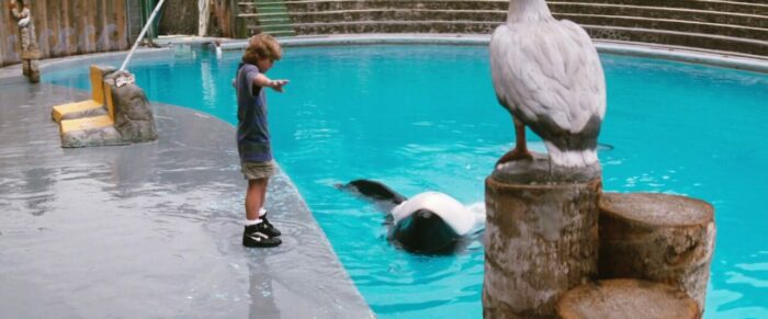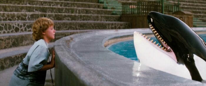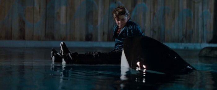 Malgré tout, Sauvez Willy n’est pas un film désagréable à suivre. Ce n’est pas trop niais, le casting suit, la mise en scène est dynamique, c’est assez rythmé pour ne jamais ennuyer, et la musique signée Basil Poledouris, même si on est bien loin des scores de Robocop, Conan ou Starship Troopers, est mignonne comme tout. Mais ce qui impressionne, on y vient, c’est les nombreuses scènes mettant en scène l’orque, mélange d’un véritable épaulard dressé et d’animatronique que le découpage et le montage rend invisible, Sauvez Willy est sur ce point irréprochable, bien que le dernier plan ou Willy fait son célèbre saut est aujourd’hui bien daté il faut l’avouer, les CGI étant balbutiants à cette époque. Mais la chose la plus folle qui sort de Sauvez Willy, ce n’est pas le film en lui-même mais ce qu’il a déclenché. Succès mondial, le métrage a attiré l’attention sur Keiko, l’orque qui joue Willy, dont les conditions de captivité n’était pas si différentes de celles montrées dans le film. Pire encore, le traitement de l’eau inadapté a fini par affaiblir son système immunitaire. L’émotion suscité par Sauvez Willy et la réalité dépassant la fiction, Keiko a au fil des ans été déplacée dans un bassin construit sur mesure puis dans un enclos marin avant de retrouver la liberté en 2002. N’ayant jamais su se réadapter à la vie sauvage après 22 ans de captivité, elle est décédée un an plus tard. Il y a des films tirés d’histoires vraies et il y a Sauvez Willy, fiction qui est devenue une réalité et ça, c’est beau.