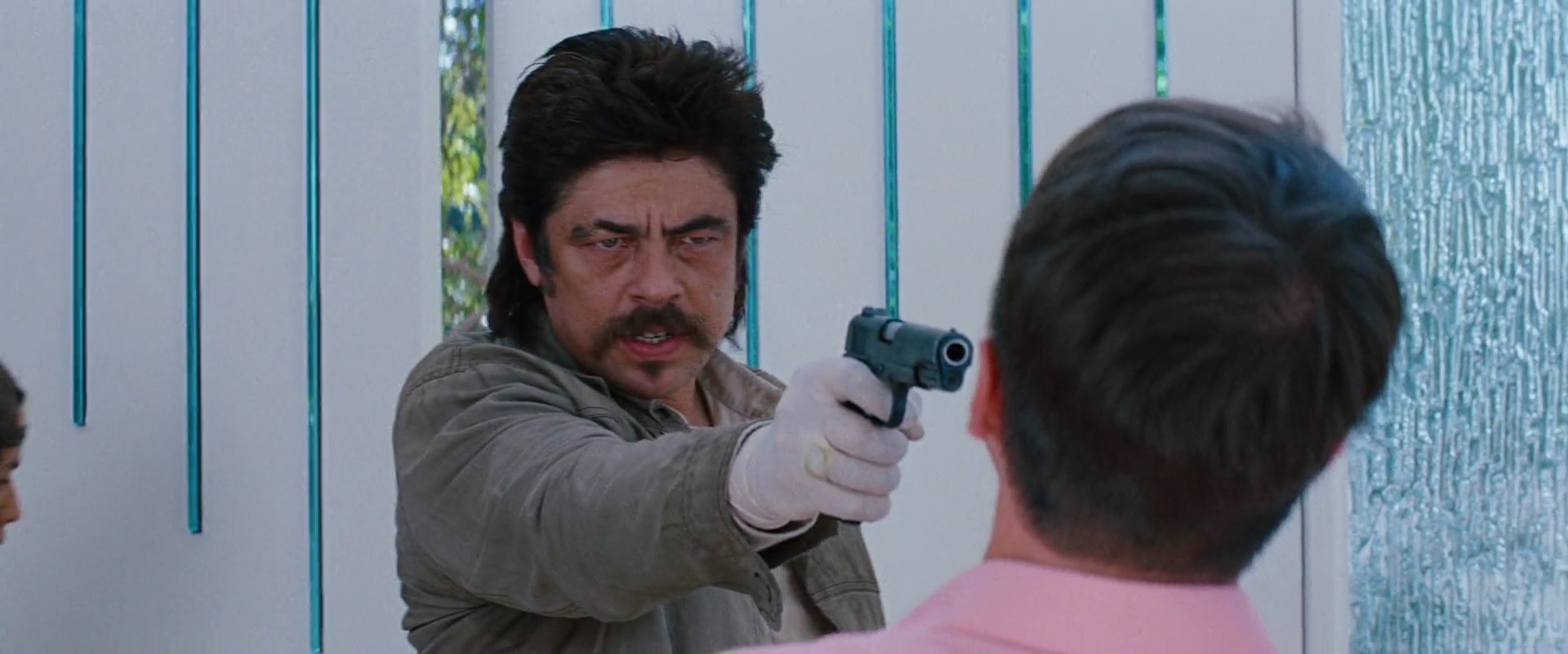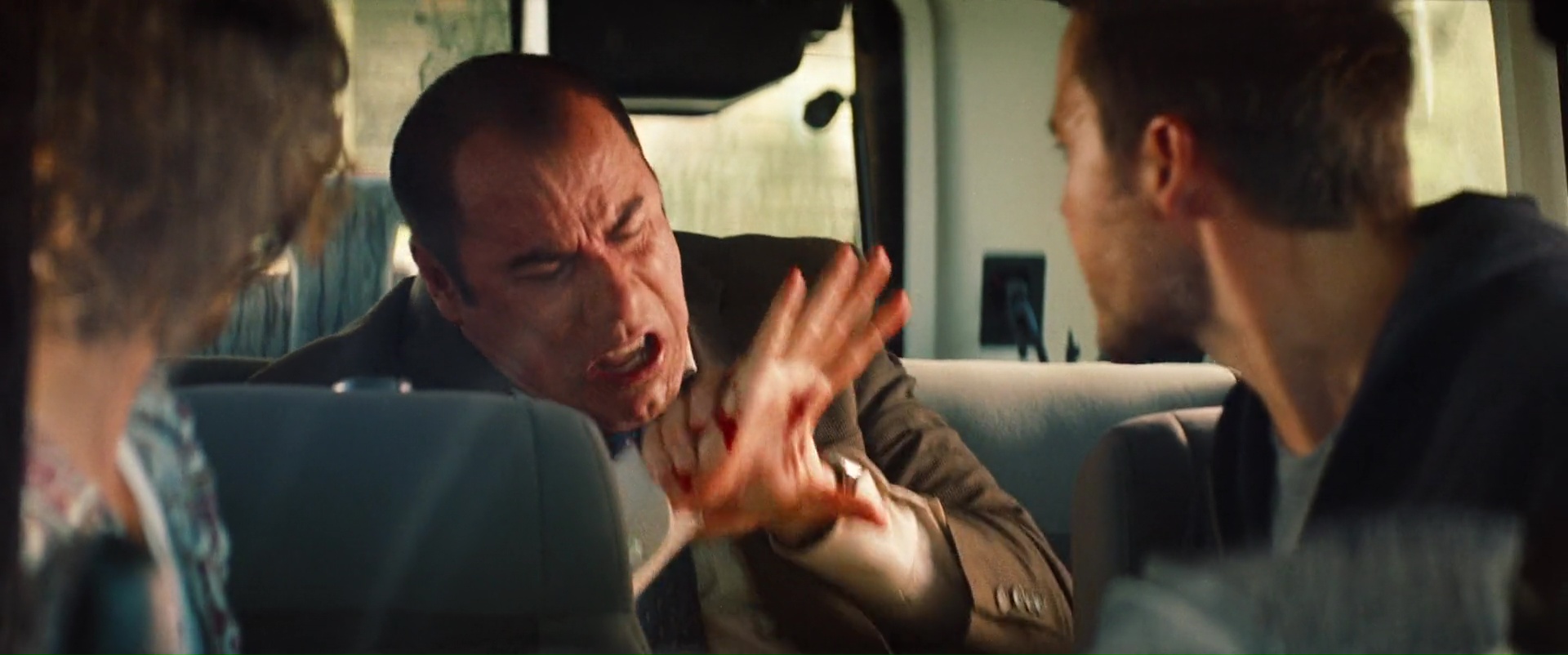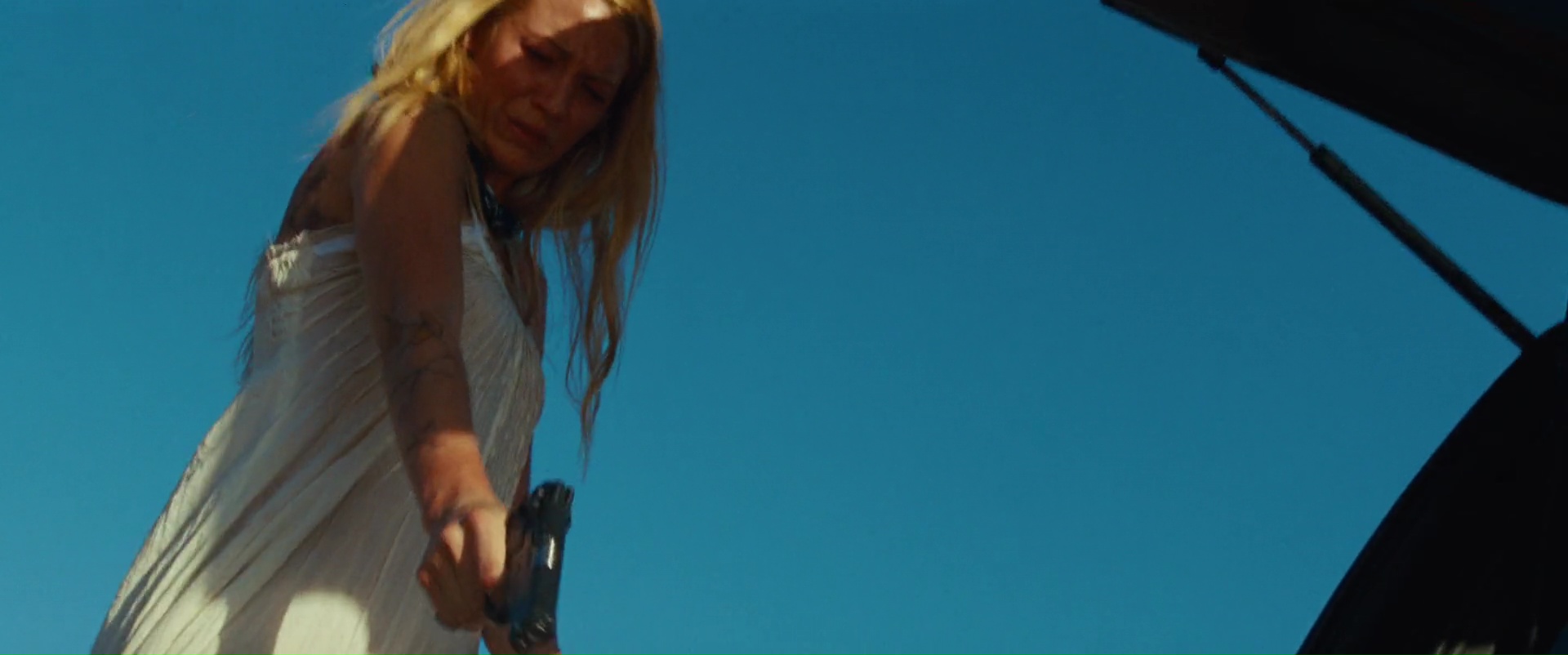 Sauf qu’ils refusent, sinon nous n’aurons pas de film, ou du moins pas de film intéressant, et voilà que tout s’enchaîne. Les coups bas, les kidnappings, les meurtres, fusillades, vols. Savages ne raconte rien de nouveau, et en soit, on peut se demander pourquoi Oliver Stone a voulu adapter ce roman de Don Winslow. Et bien justement, un peu à la manière de U Turn (mais en moins bon, quand même), Oliver Stone a vu là matière à faire un film efficace, un polar basé avant tout sur ses personnages et à l’action donc au final plutôt rare mais efficace, et qui collait parfaitement à son style de mise en scène. Car si on pouvait penser que Stone s’était calmé avec les années, on retrouve là pourtant clairement son style pas toujours subtil et rentre dedans que beaucoup aimaient par le passé. Un réalisateur se raccrochant à sa gloire passée ? Peut-être, et en soit, c’est réussi pour moi, le film du haut de ses 2h11 n’est clairement pas désagréable à suivre. Stone nous livre quelques idées de mise en scène bien plaisantes, les acteurs font pour la plupart de l’excellent boulot même lorsqu’ils en font des tonnes, l’ensemble est rythmé, la violence frontale et peut faire mal par moment, et ce dés le début. Taylor Kitsch (John Carter, Battleship, du grand cinéma !) et Aaron Taylor-Johnson (Kick-Ass) campent les héros de cette fable avec brio, tandis que leur lien, l’amour de leur vie, O, est jouée par Blake Lively, certes un poil en dessous des autres, mais que Stone rend hypnotique à l’écran. Le reste du casting n’est pas en reste, et on ne pourra que regretter que certains soient autant en retrait. Benicio Del Toro est génial en homme de main des Cartel, John Travolta en agent des Stups ripoux et Salma Hayek en boss du cartel en font tous les deux des tonnes, et c’est souvent délicieux à l’écran. Le casting ne s’arrête pas là, et on regrette donc de voir certains acteurs ne faire que de la figuration, notamment Emile Hirsch (génial dans Killer Joe). Mention en tout cas à la scène que Travolta et Del Toro partagent dans le troisième acte, jouissive de par l’humour qui se dégage de leur jeu.