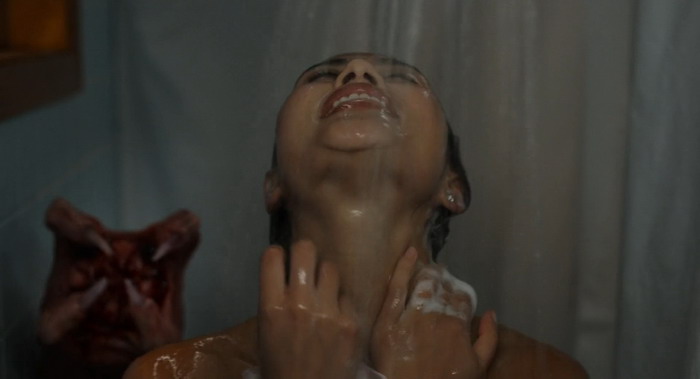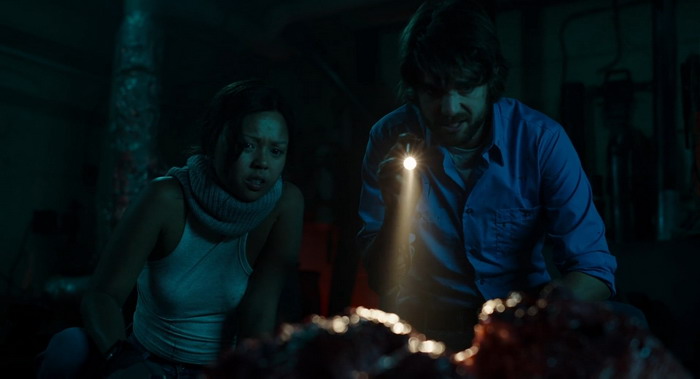 Un des points forts de Scared Shitless, c’est qu’il arrive très facilement à rendre hommage aux films de monstres des années 80 / début 90 et de leurs effets pratiques. Ces effets pratiques, on les doit au spécialiste des maquillages et des effets spéciaux Steven Kostanski, qui a travaillé sur des films tels que Ça : Chapitre 1, Suicide Squad ou encore Crimson Peak, également réalisateur (Psycho Goreman, le remake de Deathstalker), et qui réalisé ici une fois de plus un bien beau travail. Ses petites créatures, semblant sortir de la bouche d’un Alien ou d’un Predator, sont bien craspec comme il faut et surtout très crédibles, tant dans leur visuel que dans leur animation. Même s’il y a parfois des CGI pour « augmenter » certains moments sanglants, les amateurs de gore à l’ancienne retrouveront ici ce charme des films d’horreur des 80’s et ne pourront que se marrer devant le cliché de la scène de douche, devant cette morsure sur testicules, devant cette vieille dame littéralement aspirée dans des chiottes. Le film se montre parfois très inventif dans ses effets, et même s’il n’apporte au final rien au genre, ce qu’il faut, il le fait avec passion, nostalgie et sincérité, avec un tout un tas de clins d’oeil à des films avec lesquels le réalisateur a sans doute grandi. Lorsque le monstre se retrouve en train de cuire au micro-onde, difficile de ne pas y voir un clin d’œil à Gremlins ; lorsque nos héros arrivent en disant « Who you gonna call », c’est forcément un hommage à Ghostbusters ; le plan final avec les œufs du monstre, on ne peut y voir que du Alien. Alors Scared Shitless est loin d’être parfait, avec par exemple un scénario prévisible à cause de facilités et qui en plus s’enchaine un peu trop vite (à cause de la durée du film). On pourra également lui reprocher que les motivations de ses personnages sont parfois un peu forcées pour bien coller au scénario. Mais au final qu’importe car c’est le genre de film qui a été pensé comme un divertissement pas prise de tête qui ne se prend pas au sérieux, comme un film à voir juste pour prendre du bon temps et s’amuser devant la légèreté et le grotesque de l’ensemble. Bref, Scared Shitless est une bonne petite série B créative et pleine d’énergie qui fait du bien pour qui aime un tant soit peu les comédies horrifiques.