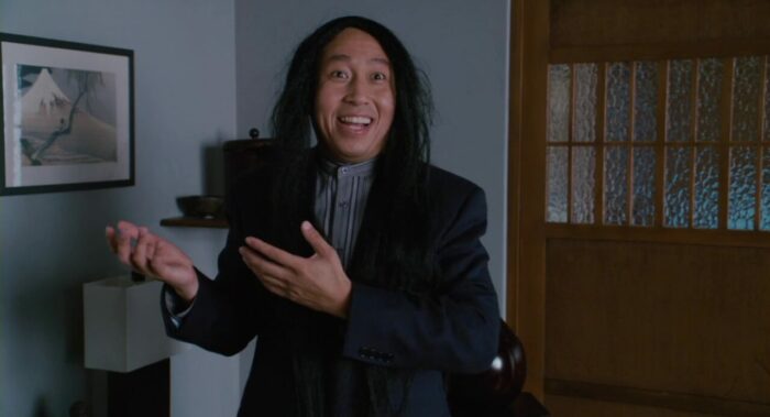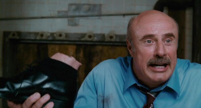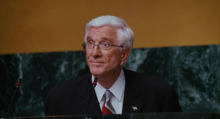 Pourtant, Scary Movie 4 ne commence pas si mal que ça. Niveau gags, ça souffle le chaud et le froid mais surtout le chaud. Les parodies de Broadback Mountain et The Grudge réussissent à faire rire et David Zucker semble assez impliqué en mélangeant comique à la fois à l’avant et l’arrière-plan. Puis sans aucune raison, passé 20 minutes qui à défaut d’être prometteuses étaient au moins encourageantes, tout s’écroule. David Zucker perd la foi et entre scènes faciles, peu inspirées (on ne compte plus les personnages qui se prennent des trucs en pleine face) et parodies crispantes (ce final insupportable qui clôture le film). Si les deux premiers films de la saga se démarquait les uns des autres, Scary Movie 4 est dans le fond une redite de Scary Movie 3 dont il reprend les parodies de SF et de films de fantôme asiatiques, l’enfant qui s’en prend plein la poire et fait ressurgir un faux Michael Jackson. Reste Leslie Nielsen, comme toujours impeccable, qui revient dans la peau du président d’un président des États-Unis inspiré de Georges W. Bush Jr. qui est la bien la seule chose qui tire vers le haut le film. Dommage que cela ne concerne que trois petites scènes dans un quatrième opus qui malgré quelques soubresauts d’humour ne parvient pas à surprendre, ni à faire rire.