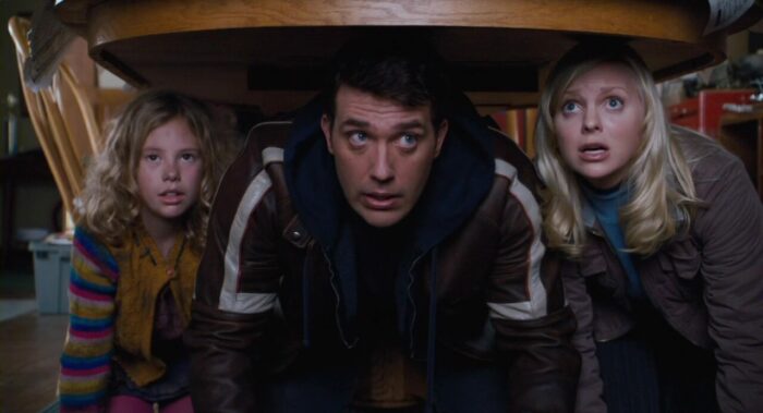 Pour Scary Movie 4, pas grand-chose ne change. Des débuts de la saga, ce nouveau film conserve sa star Anna Faris à laquelle vient se greffer Regina Hall dont le personnage n’est plus à une résurrection près. Pour le reste, il faudra compter sur les personnages introduits dans Scary Movie 3, à savoir d’un côté Charlie Sheen et Simon Rex dans de petits rôles justifiant leurs absences et de l’autre le duo Anthony Anderson-Kevin Hart. On notera également plusieurs caméos dont Shaquille O’Neal, Phil McGraw, Carmen Electra, Michael Madsen ou les rappeurs Lil Jon, Bubba Sparxxx, Bone Crusher et YoungBloodZ. Coté parodies, Scary Movie 4 s’attaque à Saw, La Guerre Des Monde, The Grudge, Le Village ou encore Le Secret de Brokeback Mountain. Le résultat ? Ce n’est pas catastrophique, mais ce n’est pas ce que la saga a donné de plus brillant. En premier lieu, le classement PG-13 fait des dégâts dans l’humour. C’était déjà le cas pour Scary Movie 3, mais il en repoussait les limites pour garder un minimum cette forme de politiquement incorrecte caractéristique de la saga. Ici ce n’est jamais le cas à une exception près, sans surprise le moment le plus drôle du métrage.