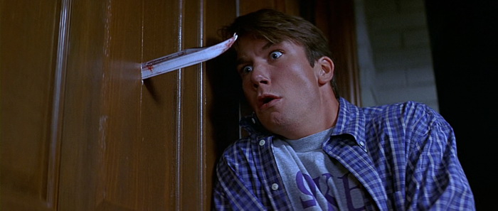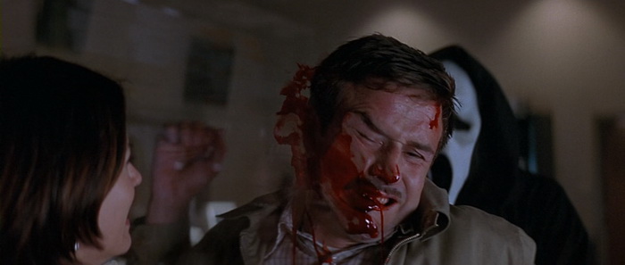 Déjà, la fin. Elle est chaotique, grotesque et terriblement mal orchestrée. En un sens parce qu’elle met en scène une vengeance facile, prévisible et très mal pensée, mais surtout gratuite. Mickey le psychopathe n’a aucune motivation et s’éloigne drastiquement des traumas justifiés d’un Billy Loomis. Quant à sa mère… On est au fond du trou et on creuse. La multiplicité des personnages venait aussi gâcher l’aspect que j’ai évoqué : le Whodunit. Littéralement « qui a fait ça? », cette variante policière que Craven avait instigué dans le premier volet, immergeait le spectateur dans la recherche effrénée du coupable. Cette suite nous présente trop de personnages divers, qui n’ont pour la plupart pas de réels impacts sur l’histoire et nombre de leurs interactions sont clairement sans intérêt. Nous nous retrouvons donc dans l’incapacité totale, à l’instar du premier, de soupçonner qui que ce soit tant les interventions sont multiples. Revenons enfin sur ce qui, selon moi, est une des principales erreurs du film : La mort de Randy. Moteur essentiel de la narration, Randy était véritablement une incarnation du syndrome de Wak (2), synthétisait toutes nos connaissances cinématographiques en matière de genre et pouvait en ce sens faire le lien entre le spectateur et la diégèse de son univers. Ses réflexions donnaient du sens à ce qui se passait à l’écran et permettait de nous faire analyser le fait que le film se pense lui-même film… Le supprimer fut une erreur fatale à la série, qui ne cessera de s’en excuser notamment à travers son intervention en vidéo dans le troisième volet et tous les ersatz de geeks qui le suivront.