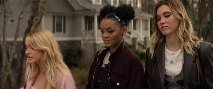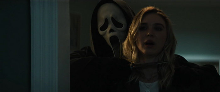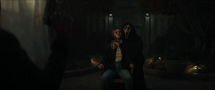 Scream 7 nous vomit à la gueule des centaines de références et clin d’œil aux autres films de la saga, en particulier au premier film, comme s’il était incapable d’exister par lui-même, d’être une entité à part entière dans la saga. C’était déjà le cas dans les opus 5 et 6, mais ici, c’est du début à la fin, du fan-service jusqu’à l’overdose et une overdose qui arrive au bout de 15 minutes. C’est simple, il n’y a pas une scène qui ne renvoie pas à quelque chose du premier et deuxième film (et même troisième), que ce soit carrément une scène miroir ou un simple petit détail. Et c’est même pire que ça puisque la structure de Scream 7 est exactement la même que celle du premier Scream, mais en inversé. Scream premier du nom commençait avec le personnage de Steve attaché à une chaise dans le jardin de Casey (Drew Barrymore) et se terminait par une confrontation finale chez le personnage de Stu. Scream 7 commence par une confrontation dans la maison de Stu et se termine avec le personnage de Tatum, la fille de Sidney, attachée à une chaise dans le jardin de la maison de Casey. C’est ça Scream 7, un film qui se croit intelligent en jouant avec le meta de la saga, mais soit sans réellement comprendre ce que doit être un film meta, soit en se disant qu’il faut faire du méta un peu crétin pour que ce soit compris de tous, soit un peu des deux. C’est d’une connerie sans nom, avec un film qui se spoile lui-même en croyant balancer des références, qui se dit que ça serait hyper cool de reprendre les musiques du premier film et de les mettre sur le même genre de scènes, qui se sent obligé d’expliquer ses références au cas où le public ne les comprenne pas, qui est incapable de donner à son ghostface des motivations qui tiennent la route, qui est incapable d’introduire des nouveaux personnages un minimum intéressants, qui nous sort des personnages censés être plus avisés et plus forts grâce à leurs expériences passées mais qui répètent sans cesse les mêmes erreurs, … Scream 7 écope de la plus mauvaise moyenne de la saga sur l’agrégateur de critiques Rotten Tomatoes, 43%, et on comprend vite pourquoi. Mais ça fait suffisamment de pognon pour qu’on continue de traire la vache à lait. Et moi je continue comme un con de regarder le naufrage en étant quelque part un peu triste de voir le naufrage de la saga. Parce qu’à l’exception de deux petits moments gores rigolos (l’éviscération et le coup de la tireuse à bière), il n’y a rien d’autre à sauver de ce Scream 7.