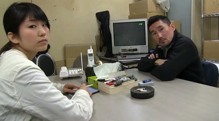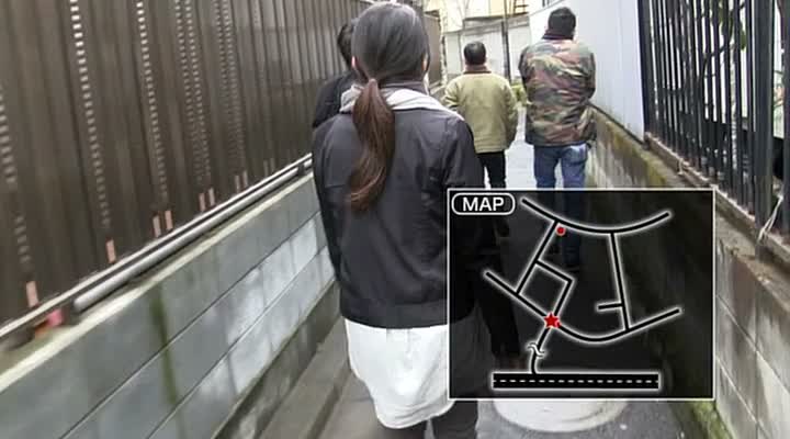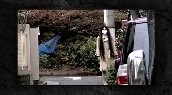 Pour ce premier métrage de cette anthologie, c’est la légende de Kuchisake Onna, la femme à la bouche tranchée. Shiraishi retourne réellement à ses premiers amours, puisqu’il avait déjà mis la jeune femme sur le devant de la scène avec Carved, et que les faux documentaires, il en a fait le tour, maîtrisant chacun de ses aspects. Ce premier opus souffle pourtant le chaud et le froid. Non pas qu’il soit mauvais, loin de là, Shiraishi emballant son produit sérieusement et nous livrant quelques excellentes scènes, mais il semble ici ne pas maîtriser son rythme. À moins que cela soit volontaire pour accentuer l’impact de certaines scènes, mais dans l’ensemble, on pourra tout de même noter un petit ventre mou, alors que le métrage ne dure que 1h11. Pourtant tout commence si bien, lorsque Shiraishi nous présente les deux personnages principaux, le réalisateur Kudo (joué par l’excellent Ôsako Shigeo (le cinglé de Grotesque, c’était lui) et son assistante Ichikawa (jouée par Kuboyama Satoshinatsu, qui apparaissait déjà dans Chô Akunin de Shiraishi), alors qu’ils regardent une vidéo. Une simple scène qui nous présente les personnages, mais également via la vidéo le sujet du film. Belle mise en bouche, puisque la bande en question est plutôt bien réalisée et fait monter la tension en deux minutes environ. Débute alors l’enquête. La vidéo est-elle réelle ? Cette femme étrange est-elle la femme à la bouche tranchée ? Où se cache-t-elle ?