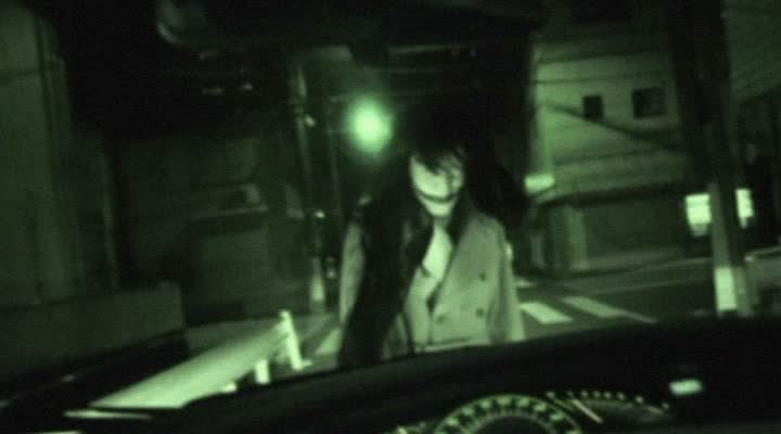 La première partie de l’enquête, où les personnages retournent sur les lieux de la vidéo, fonctionne plutôt bien, surtout que Shiraishi (jouant le caméraman) sait filmer, et qu’il a concocté un personnage intéressant pour Ôsako Shigeo, le faisant parfois basculer d’une émotion à une autre en une seconde. Commençant une interview calmement, il pourra devenir violent suivant les réponses qu’il obtiendra. Malheureusement, pendant ensuite une petite demi-heure, l’enquête patine, à un ou deux sursauts près, et le rythme en prend un grand coup. Quand le film se réveille finalement, on serait presque en train de dormir. C’est dommage, car sa longue scène finale, durant bien 15 minutes, est excellente, puisque nos personnages tentent de retrouver la femme à la bouche tranchée. L’équipe se divise alors en deux pour capturer la femme à la caméra, à la fois depuis un appartement et depuis une voiture attendant au coin de la rue. Une scène faisant son petit effet, montrant que Shiraishi a plus d’un tour dans sa poche. Un peu bancal en milieu de récit, ce premier opus parvient pourtant à captiver et donne espoir pour la suite.