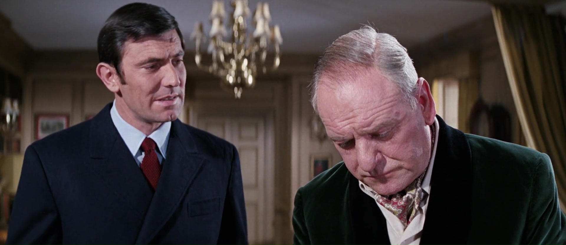 Mais Au Service Secret de sa Majesté est le plus long des James Bond pour l’époque, avec tout de même 2h22 au compteur, ce qui n’est pas rien. Et, à l’exception du final, la seconde partie du récit, lorsque Bond est démasqué, se fait alors plus classique dans son traitement, et un peu moins inspiré dans la mise en scène. Peter Hunt donne plus de dynamisme par exemple aux scènes d’action, grâce à quelques accélérés, un montage vif, mais alterne beaucoup trop les plans larges (fort réussis) et les gros plans (qui eux accusent le poids des années). Le film se fait moins surprenant donc, sauf dans certaines erreurs. Blofeld n’est plus joué par Donald Pleasence comme pour le précédent métrage mais par Telly Savalas. Il campe un bon Blofeld certes, mais le film fait un choix étrange, comme s’il s’agissait de leur toute première rencontre. Choix étrange donc, George Lazenby remplace Sean Connery ou campe-t-il le même personnage ? C’est un détail certes, mais bon. Ironiquement, c’est lorsque l’action débarque clairement dans le récit que quelques longueurs se font sentir, du moins pour moi (beaucoup trouvent le film long mais dans sa première partie). L’ensemble est rattrapé ceci dit par son final, sans doute le plus émotionnel de toute la saga, et le plus intéressant. Ce sixième opus changeant beaucoup de choses apporte finalement énormément à la saga, un peu de nouveauté même. Si l’humour est toujours présent, il se fait un peu moins envahissant, et l’ensemble semble avoir été particulièrement soigné. Et malgré un réalisateur un peu moins à l’aise pour filmer l’action, le film s’en sort haut la main. Anecdote amusante, ce serait le James Bond préféré de Christopher Nolan, ce qui ne surprend guère vu le passage sous la neige de Inception, faisant très James Bond (et étant malheureusement le passage le plus faible du film à mes yeux).