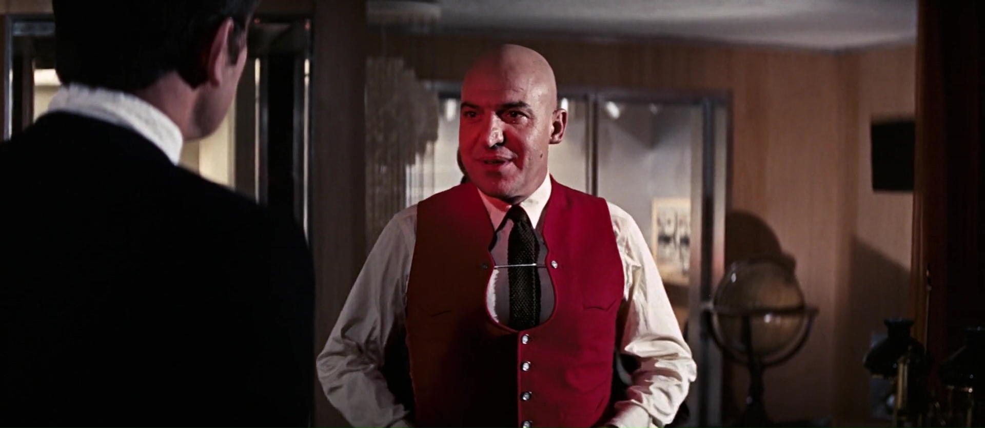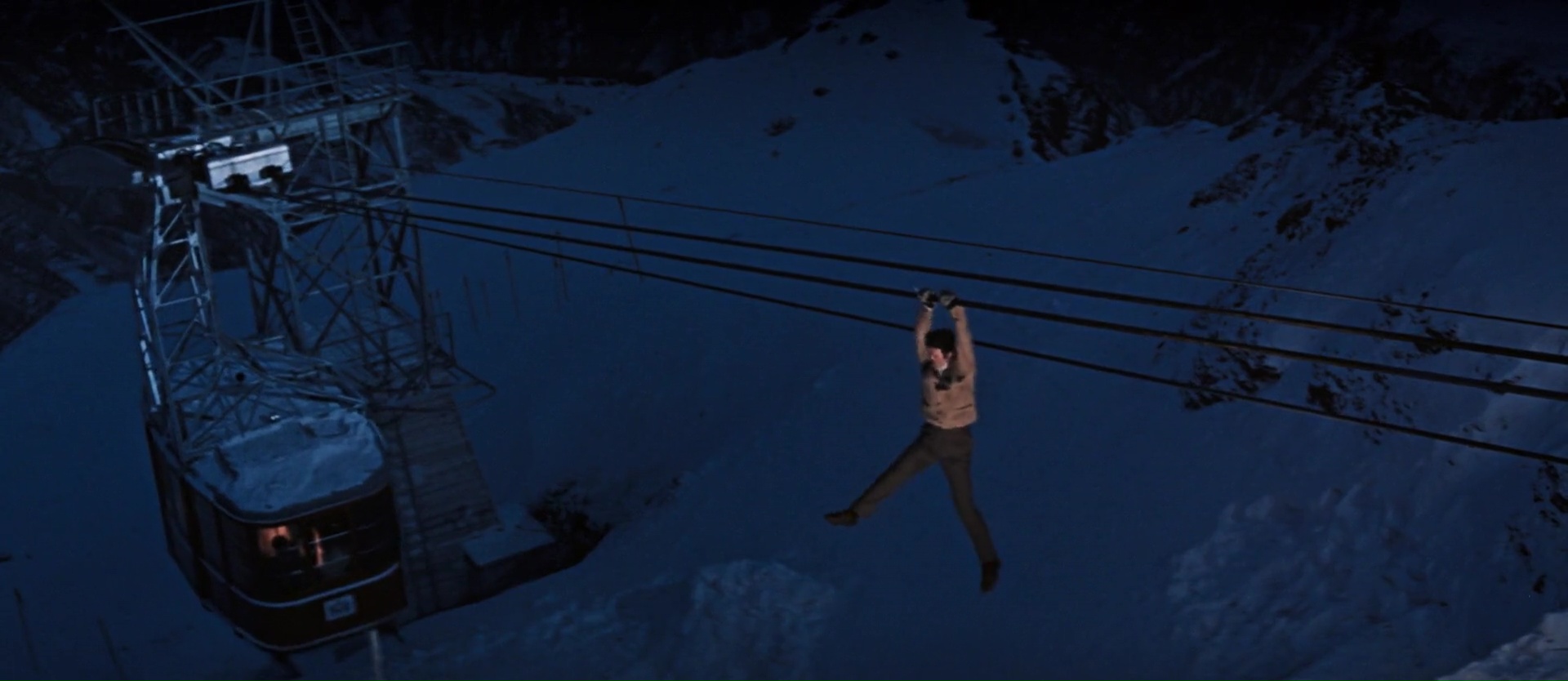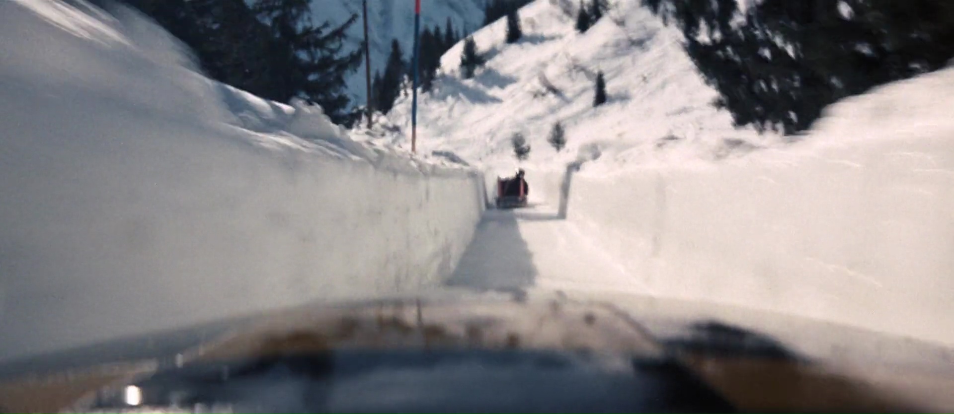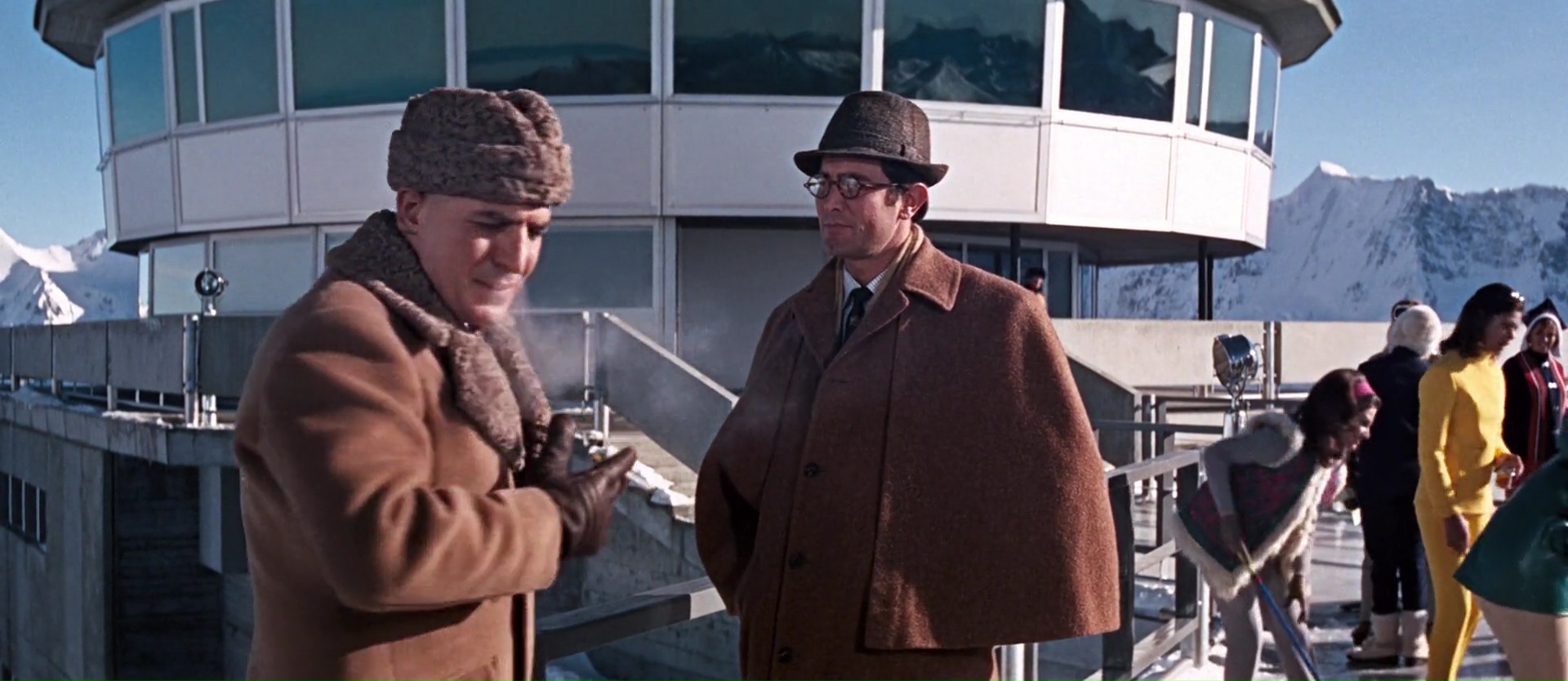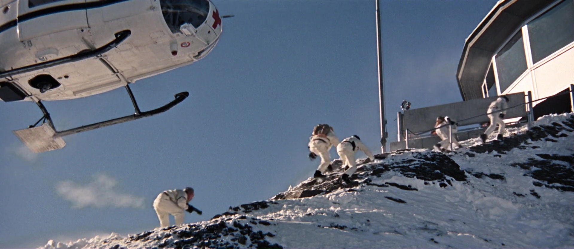 Ce coup-ci donc, James Bond tombe sur Tracy, qu’il drague ouvertement sans savoir qu’il s’agît de la fille d’un parrain de la mafia Corse. Parrain qui va justement lui demander clairement d’être en couple avec sa fille avant de calmer ses folies, en échange d’informations sur, forcément, toujours le même méchant, Blofeld, chef de Spectre. Et ça marche, d’ailleurs la première heure, voir même les 1h30 du début, fonctionnent à merveille, alors qu’il n’y a quasiment aucune scène d’action. Une réelle rigueur d’écriture, des personnages développés, une sublime Diana Rigg, et surtout une mise en scène très appliquée de Peter Hunt, monteur sur les premiers James Bond. Il livre une mise en scène au final assez différente des précédents opus, qui se remarque de loin, avec des plans travaillés, des idées visuelles nouvelles, et même quelques filtres de couleurs qui font rentrer James Bond dans les années 70 (même si le film date de 1969). Une excellente mise en scène. On suit donc l’intrigue avec plaisir, jusqu’à l’infiltration de Bond dans l’institut contrôlé par Blofeld et situé au sommet d’une montagne (comme dans le récent Spectre tiens). Et en réalité, jusqu’à ce que James Bond soit démasqué, ça marche toujours du tonnerre. Une vraie sobriété dans l’écriture (bon, même si on n’échappe pas à certains clichés), de vrais choix esthétiques.