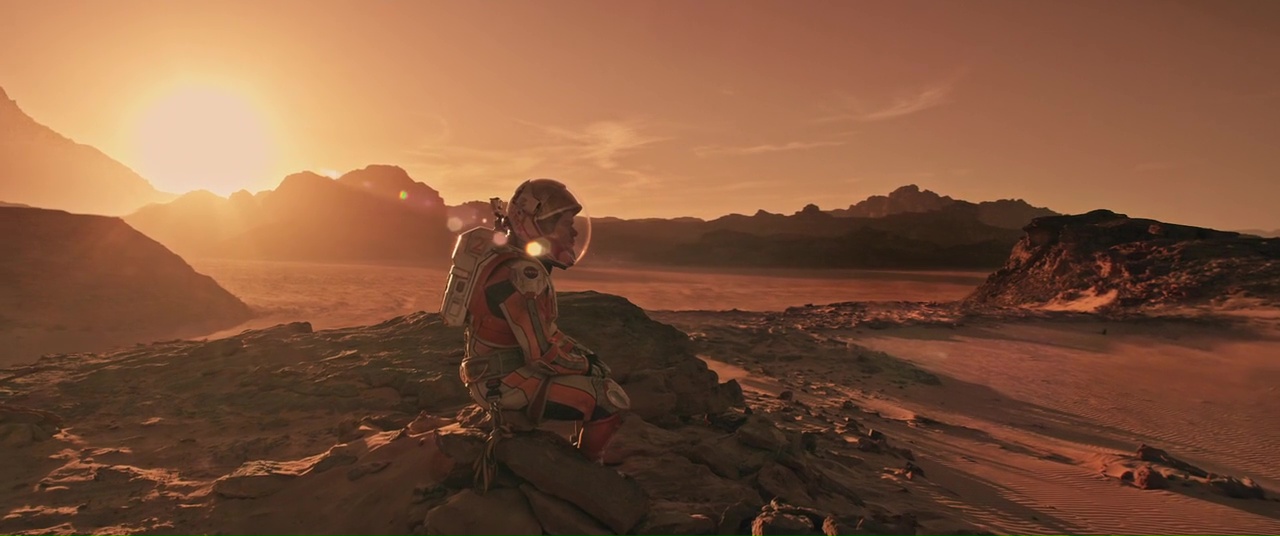 Le retour de Ridley Scott à la science fiction me faisait peur. Oui, si Ridley Scott, c’était Alien et Blade Runner, récemment, c’était aussi Prometheus, et ça faisait déjà plus mal. Et donc peur. Pour son nouveau projet cette fois-ci, comme l’indique le titre français, il est question de la planète Mars. Une planète un peu maudite au final, puisque la plupart des films s’y déroulant ne sont pas fameux. Ghosts of Mars est très moyen, Doom est mauvais, Planète Rouge moyen, Mission to Mars saccagé par un final raté… Les exemples ne manquent pas. Et miracle, Seul sur Mars est un bon film, un bon Ridley Scott, et aisément un des meilleurs métrages se déroulant sur Mars, même si finalement, c’est plus l’histoire de Mark Watney, seul sur la planète, et donc de ses méthodes pour survivre et communiquer avec la Terre qui sont au cœur du récit que la planète en elle-même. Seul sur Mars nous raconte donc comment Mark Watney, joué par Matt Damon, va survivre seul sur la planète pendant plus d’une année après un accident qui le laisse pour mort, forçant son équipe à quitter la planète. Ce qui frappe dés le début, c’est que malgré quelques rares éléments introduits pour faire avancer l’histoire, le métrage reste réaliste vis-à-vis de ce qu’il propose. Une mission sur Mars se déroulerait ainsi probablement ainsi. La deuxième chose qui interpelle, c’est que Seul sur Mars n’est pas un film stressant, n’est pas un film bourré de suspense, on se doute de la finalité avant même d’atteindre la moitié du métrage. On pourrait donc le qualifier en quelque sorte de feel good movie de science fiction.