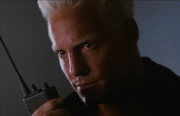 Mais revenons-en au film, car oui, je suis persuadé que vous êtes tous très intéressés par cette magnifique saga que semble être Shadowchaser. On est encore dans une histoire de création de guerrier parfait, dénué de tout sens de la moralité, tout ça tout ça, avec forcément perte de contrôle par son créateur et il faut donc l’arrêter avant qu’il ne fasse trop de dégâts… Pour l’originalité, il faut chercher ailleurs, ça c’est certain. Mais pourtant, Shadowchaser a ce charme particulier de ces séries B d’action des années 90 telles que les PM Entertainment, toujours bourrines, sans concession, pleines de poésie, et très souvent faites avec sincérité. Ça ne s’emmerde pas, ça va à l’essentiel, ça doit délivrer de l’action et du suspense rapidement, avec son gentil héros qui en a dans le slibard, qui cherche souvent la rédemption, une belle pépète courageuse, des personnages secondaires qui vont venir mettre des bâtons dans les roues, des grands méchants qui ont oublié leur sens moral dans un autre film, … Oui, j’aime ce genre de films, et alors ? Vous aussi je suis sûr que vous avez vos petits plaisirs coupables. Si si, on en a tous, je ne culpabiliserais pas de regarder de la série B décérébrée de vidéoclubs, non mais !