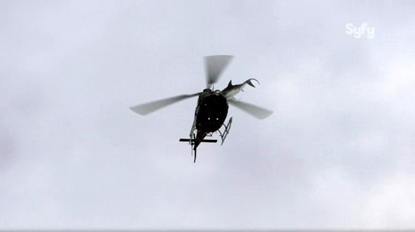 Mais voilà, on tire sur la corde, on tire sur la corde, et au bout d’un moment, la corde casse. A trop vouloir en faire toujours plus dans le nawak absolu, la saga Sharknado se prend les pieds dans le tapis et finit par ne plus remplir son contrat : faire rire. Et une comédie nanarde qui ne fait pas rire, avouons que c’est tout de suite bien plus navrant. Alors oui, deux ou trois moments auront provoqué sur ma personne un fou rire incontrôlé (le coup de l’hélicoptère humain par exemple), mais ce sont 4 voire 5 minutes bien maigres comparées à la lourdeur des 1h15 restantes. Car le film a beau être court, 1h22 génériques compris, on a la désagréable impression qu’il est interminable. Un peu comme si trop de nawak tuait le nawak. Comme la consigne est de toujours pousser le bouchon plus loin que le précédent opus, on en arrive à un point où le navrant prend le pas sur le rire. Alors on regarde un peu consterné, en espérant que le final avec le tant attendu Sharkzilla évoqué dans la bande annonce relance un peu la rigolade mais rien n’y fait. Le film s’essouffle très rapidement malgré un rythme qui ne faiblit que rarement et l’ennui s’installe. On assiste du coup impassible à des scènes toutes plus over the top les unes que les autres, avec des scènes virant au n’importe quoi, aussi bien dans ce qu’il s’y passe que dans les dialogues (tout en ayant accepté le point de départ absurde du film hein), le tout joué par des acteurs qui eux-mêmes ne semblent parfois même plus y croire. Ou alors ils sont complètement paumés à cause de l’abus de fonds verts (très visible dans les scènes où ils « flottent » à l’intérieur des sharknados), c’est possible aussi. Je vous passerais le sempiternel épisode des effets spéciaux, ils sont à l’image des autres opus, à savoir très approximatifs.