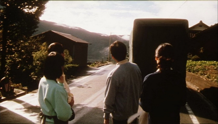 S’annonçant sous les meilleurs auspices, le film tient bien toutes ses promesses. La singularité de l’île de Shikoku, la très jolie photographie de l’ensemble (le regretté Shinoda Noboru était ici directeur de la photo), et cette très belle idée de départ qui plonge Shikoku au centre même de l’intrigue : tout cela a vraiment tout pour mon plaire. Il est en effet ici question du fameux pèlerinage des 88 temples, qui existe réellement au Japon. L’écrivaine Bando Masako détourne ici cette croyance séculaire pour improviser un processus capable de réveiller les morts. Quiconque terminerait ce pèlerinage un nombre de fois correspondant à l’âge de la personne décédée, dans le sens inverse des aiguilles d’une montre (donc dans le sens inverse du vrai pèlerinage), serait ainsi susceptible de ressusciter l’être tant regretté. Une mère va ainsi tout tenter pour ramener sa fille à la vie. Cette même fille qui hante toujours son village de Yaku, perdu dans la région de Kôchi, au sud de Shikoku. Éternellement amoureuse, Sayori ne s’éloignera jamais de son amour d’enfance, Fumiya. Aussi lorsque celui-ci s’éprendra d’une autre personne, Sayori ne comprendra pas…