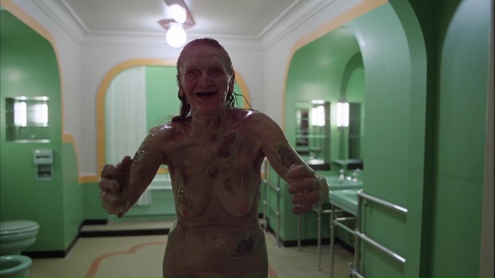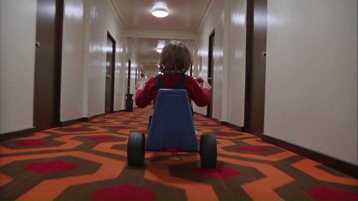 Et nous découvrons Jack Torrance, joué par Nicholson à son rendez-vous pour devenir le gardien de l’hôtel. Une demi-heure plus tard après cette longue introduction, et nous voilà en plein hiver, dans l’hôtel, avec seulement trois personnages, Jack, Wendy et leur fils Danny. Et à partir de là, Shining se fait une œuvre déstabilisante, mais dans le bon sens du terme, puissante, flippante dans un sens mais à la fois jouissive d’un autre. Kubrick s’amuse avec la steadycam et livrent des plans totalement fous, comme lorsqu’il suivra Danny faisant du vélo dans les couloirs de l’hôtel, en étant juste derrière lui, sur une longue distance, caméra au raz du sol. Shining contient des plans du genre à ne plus savoir où donner de la tête, et pour peu que l’on s’y connaisse un peu en technique, on se doit d’être admiratif. Mais outre la mise en scène, les autres domaines ne sont pas en reste. La musique donc, mélange entre des compositions souvent glauques et lancinantes et des musiques classiques fonctionne à merveille et pose immédiatement une ambiance captivante et crispante. Mixée avec l’image, le résultat est tout simplement à tomber par terre et donne une vision intéressante du thème du film, à savoir la folie. Un peu à la manière de Possession datant de la même période, Shining est un film épuisant, mais un film qui outre sa maitrise technique, repose également sur le talent de ses acteurs bien évidemment.