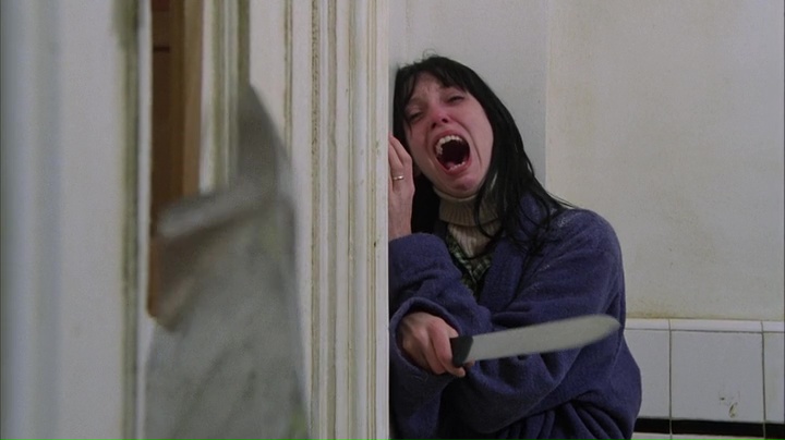 Evidemment car au final, ils ne sont que trois pendant la majeure partie du temps. Jack Nicholson livre une prestation totalement hallucinée, et de nombreuses de ces scènes restent culte. Il est aidé par l’écriture des dialogues, et son jeu tout en folie donne quelque chose d’unique à l’écran, comme lors de sa confrontation entre lui et Wendy dans le hall, continuant ensuite dans les escaliers. Shelley Duvall par contre, oui, on pourra trouver à redire sur l’actrice. Si elle livre un honnête boulot pour le rôle qu’elle doit faire, et que, on le sait, Kubrick l’aura bien poussé à bout à de très nombreuses reprises, on pourra trouver le côté nunuche de son personnage parfois bien trop présent, et à quelques rares instants peut-être un petit trop mécanique. Mais au final, rien qui ne retire la puissance du métrage, de sa première image à son long final, radicalement différent du roman donc, puisqu’il ne reprend tout simplement rien du tout ! Et c’est lorsque l’on se dit que l’on vient de voir un très grand film sur la folie que Kubrick nous assène une dernière image qui vient quelque peu nous perturber et va nous forcer à revoir notre grille de compréhension de tous les événements. Dans tous les cas, Shining est un grand film, encore plus grand dans sa version de 2h26 prolongeant le plaisir de quasi 30 minutes, mais il est vrai que si on veut le comparer, il reste une bien piètre adaptation, bien que supérieure (pour moi) au roman !