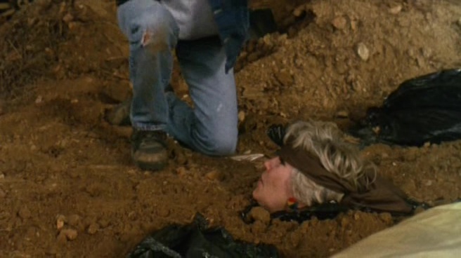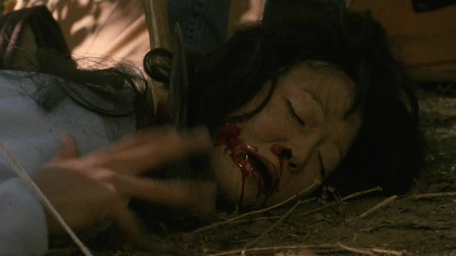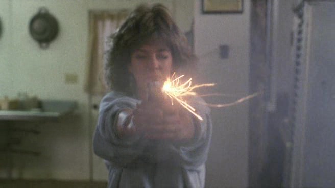 Oui, le film a été tourné trois jours après le précédent, le film bénéficie des mêmes décors, toujours de Pamela Springsteen dans le rôle d’Angela, mais on a souvent l’impression que le réalisateur, en voulant en quelque sorte refaire le même film, c’est ennuyé en cours de route et voulait surtout en finir. Car comme le précédent, les morts sont nombreuses (16), les seins nus très présents, mais oui, ça ne prend pas. Le rythme se fait par ailleurs plus lent, le carnage mettant un certain temps avant de commencer, et comme le budget est revu à la baisse, pas mal de meurtres doivent être réécris dans l’urgence pour rendre l’ensemble réalisable à l’écran. Ainsi là où l’on pardonnait facilement le côté approximatif des effets spéciaux du second film grâce à sa générosité, ici, on s’ennuie clairement, rien ne semble fonctionner. Le côté fun semble également se volatiliser assez rapidement, le carnage d’Angela se faisant beaucoup moins prenant et intéressant. Au final, seuls quelques courts dialogues feront mouche par leur second degré, comme cette discussion sur les films préférés des personnages. Angela forcément choisira E.T. tandis que le jeune homme à ses côtés lancera un « les films où l’Amérique est forte et victorieuse, comme Rambo 3 », juste avant que le noir (qui ne survivra pas, forcément), lance « un film avec des seins et du sang ».