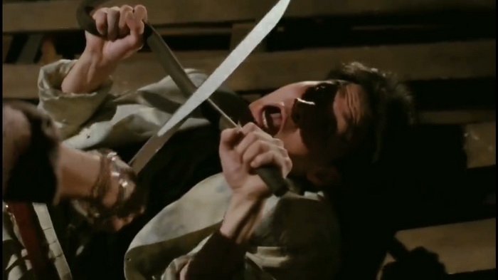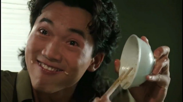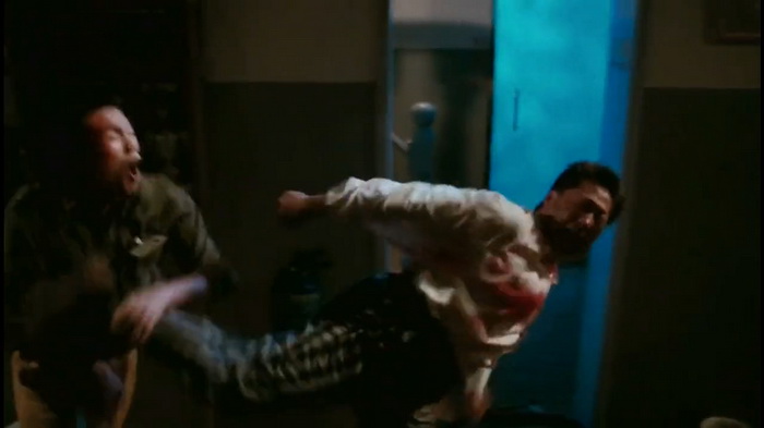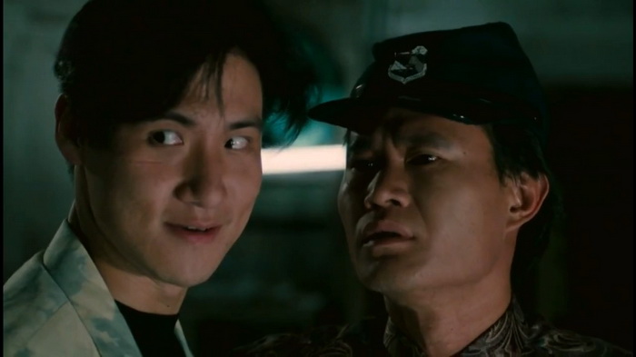 Les combats sont impeccables, prenants, foisonnants. En 1991, il fallait tout de même une impression de modernité, et celui-ci se ressent dans l’utilisation de traveling, d’une caméra mouvante, tremblante, pour insister sur la violence et la peur. Non pas que cela soit des nouveautés dans le cinéma de Hung, mais on le sent clairement plus à l’aise avec la caméra. Celle-ci sait mieux où se positionner, comment gérer ses plans. C’est surtout dans les scènes d’action où on sent une certaine variété de cadrages et de placements. Le réalisateur a de la bouteille, il sait comment rendre l’action percutante, personne ne peut le nier. Mais plutôt que de se reposer totalement sur ses acquis, autant innover légèrement avec la tambouille : la caméra est plus volatile, elle s’amuse avec les plongées, les mouvements bruts… Le montage suit cette logique et s’avère nerveux, vif, mais heureusement assez loin du désordre du début 80, où l’action était rendue assez confuse avec un montage qui se voulait punchy mais s’avérait souvent trop saccadé et donc quelque peu illisible. Ici tout semble plus propre et mieux maîtrisé, c’est l’expérience ! Mais on notera tout de même quelques irréductibles ralentis encore trop présents, qui cassent un peu la fluidité des combats… Idem pour l’humour qui, même s’il tente le mo lei tau sporadiquement, reste fortement ancré dans la décennie antérieure. Mais pour peu qu’on soit amateur de ce style de comédie, on se régale toujours. Même si ici ça flirte légèrement avec la limite.