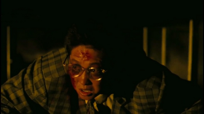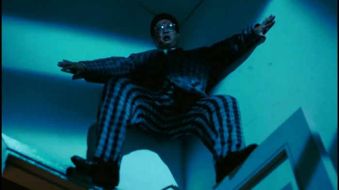 Car l’identité relativement horrifique du long métrage reste clairement assumée malgré tout. Sammo Hung s’était bien fait les dents en réalisant et en participant à des ghost kung fu comedy dans les années 80, et on ressent que cela fait toujours partie de son style. Ces films adoptaient un ton également assez loufoque et grotesque (en partie par superstition d’ailleurs, il fallait montrer patte blanche) mais utilisaient des codes et un style pourtant clairement du domaine de l’épouvante. Offrant à chaque fois cette dualité si particulière entre peur et rire. On retrouvait cette ambivalence dans Pantyhose Hero, son précédent film. Une sorte de slasher tout aussi bizarre (et réussi) où un duo de policiers vont devoir se faire passer pour des homosexuels afin de trouver le meurtrier. Même si on s’éloigne naturellement de la ghost kung fu comedy car il n’est plus notion de fantastique, on ressent malgré tout indiscutablement les réminiscences de ce cinéma. Comme dit, dans ce Slickers vs Killers, le personnage principal est traqué tout du long, par un tueur inquiétant et obsédé dont le caractère illuminé effraie presque. Les différents masques, expressions du visage, rires possédés etc … appartiennent clairement au champ lexical du cinéma horrifique moderne. Hung est souvent réduit à fuir et se cacher, offrant des moments de tension et de crispation. Les combats aussi semblent avoir une dimension plus brutale et glaçante. Bien qu’ils semblent moins nombreux que d’habitude, ils restent très énergiques et intenses. Le personnage de Hung hurle, se débat, tente de survivre comme il le peut. Le ridicule de la situation se mêle toujours à un stress bien présent. Car Hung en tant que héros malchanceux typique, se retrouvera forcément bien souvent dans les pattes de ses deux bourreaux par d’absurdes concours de circonstances. C’est drôle et grinçant, on frissonne et on rit : pari réussi. Ces deux facettes se mélangent très bien mais j’imagine que pour certaines personnes le côté anxiogène ne permettra pas de laisser place au rire. Et que pour d’autres la dimension comique et ironique les empêchera de s’investir dans la tension horrifique du film.