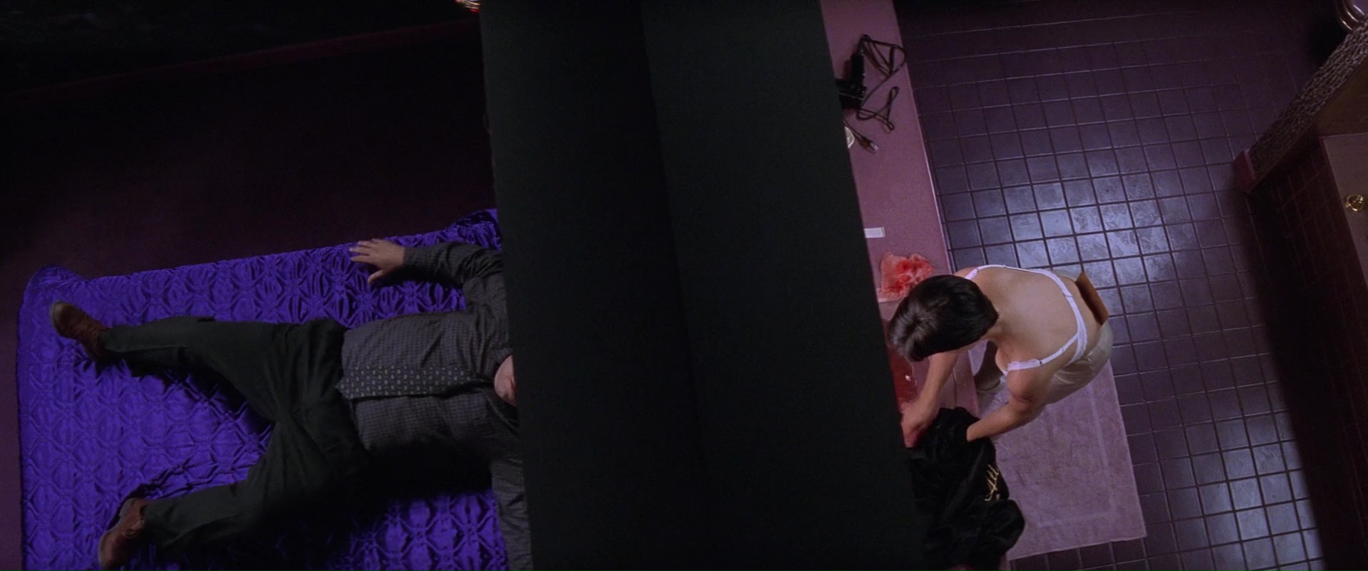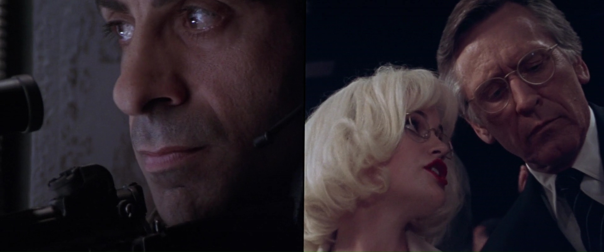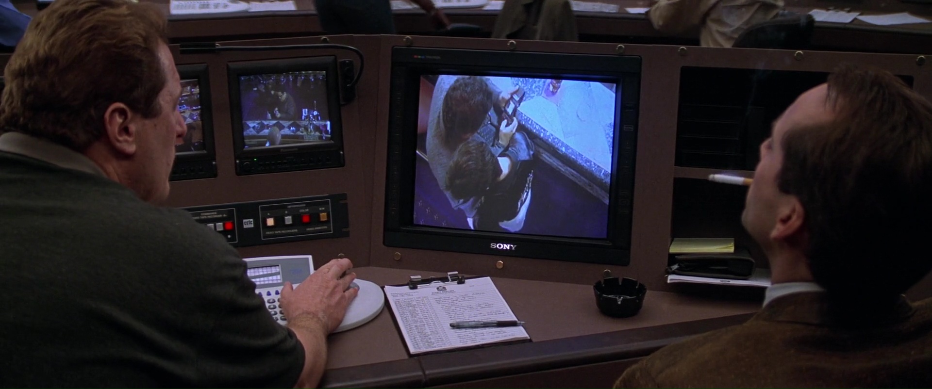 Snake Eyes est donc à tous les niveaux du pur De Palma, et encore plus avec sa scène d’ouverture bien connue, un plan séquence de près de 20 minutes. Bien entendu, tout le monde le sait aujourd’hui, et cela se remarque notamment à un moment très tôt, mais le plan séquence est faux. Néanmoins, au moins 12 minutes de ce fameux plan est un vrai plan séquence filmé à la Steadycam. Et sachant les incessants déplacements de caméras, le nombre de figurants, d’acteurs présents, les dialogues, la gestion des éclairages, des techniciens, la prise de son… et bien c’est un coup de maître, surtout que cette très longue scène met en place absolument tout le film puisque nous présentant l’intégralité des personnages, le lieu de l’action, et surtout le meurtre qui va amener l’intrigue. La caméra, et donc par extension le spectateur devient un acteur à part entière du métrage, avec un point de vu volontairement faussé, puisque passé ce plan séquence, Rick (Nicolas Cage) va mener l’enquête sur les événements ayant menés au meurtre, et reviendra donc inlassablement en flashback sur ce fameux plan séquence, mais ce coup-ci vu depuis d’autres angles. C’est bien simple, le point de vu est un des éléments principaux du métrage. Un peu à la manière de Carpenter dans Ghosts of Mars quelques années plus tard (toutes proportions gardées, je n’aime pas Ghosts of Mars), De Palma joue sur le point de vu, toujours différent puisque les flashbacks seront toujours racontés par de nouveaux personnages, et l’intérêt est simple. On peut tout simplement croire ce qu’on nous raconte, mais en soit, avec un meurtre ayant eu lieu et un complot étant derrière tout ça, ce que le réalisateur décide de nous montrer n’est pas forcément la vérité. Les vingt premières minutes en plan séquence sont donc les faits, tandis que les nombreux flashbacks, souvent dans un style cher à De Palma (l’écran splité, le plan séquence, la vue subjective) ne sont que des points de vu différents, et surtout, des « on dit ».