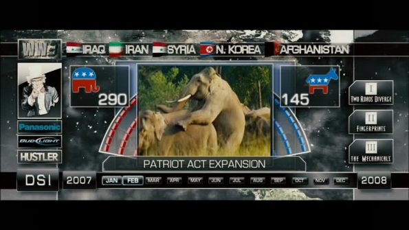 Tout l’inverse de Donnie Darko. Il faut dire que la copie présentée était une copie de travail non finalisée au niveau des effets spéciaux. Universal qui avait les droits se débarrasse du film, racheté par Sony. Le film reparti alors pendant un an avec son réalisateur en salle de montage (le deal était d’écourter un peu le métrage contre plus d’argent pour les effets visuels). Comment toute la crédibilité d’un réalisateur peut-elle s’écouler en un instant ? CANNES ! Entièrement remonté, c’est le 9 novembre 2007 que le film fit alors son apparition sur les écrans américains, dans un tout nouveau montage de 2h24. À l’arrivée, on se prend une grosse claque, tant le film est varié, traite de différents sujets, les acteurs sont tous à contre-emploi, tout le monde manipule tout le monde, la fin du monde approche, la réalité rejoint la fiction, et l’œuvre s’avère beaucoup plus mature et complexe que ne l’était Donnie Darko, tout en faisant preuve la plupart du temps d’un humour bon enfant et de scènes WTF parfois proches du nanar et pourtant, Southland Tales n’a rien du nanar !.