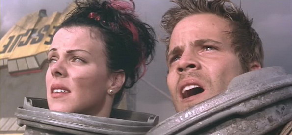 Et au milieu de tout ça, un côté comédie très prononcé, avec des acteurs qui semblent s’amuser comme des petits fous. Denis Hooper (Easy Riger, Speed, Apocalypse Now) est parfait en vieux briscard de l’espace balançant des répliques cinglantes toutes les trente secondes ; le tout jeune Stephen Dorff (Blade, Public Enemies) et la jolie Debi Mazar (Nowhere, la série Entourage) qui passent la moitié du film en sous-vêtements sans que cela ne semble leur poser le moindre problème, Vernon Wells (le méchant de Mad Max 2 et Commando) en pirate de l’espace ridicule avec sa queue de cheval et ses nombreux piercings ; mais surtout un Charles Dance (le papa Lannister bande de geeks !), THE rôle du film, qui, malgré une sacré interrogation sur le fait qu’il se soit un jour remis de ce personnage improbable, nous prouvant par A + B ô combien le ridicule ne tue pas. Imaginez : c’est un ancien scientifique, spécialisé dans la création de robots. Couille dans le potage, il lui arrive des bricoles, il est laissé pour mort suite à une explosion. Le bougre se refabrique les bouts de son corps manquants de manière cybernétique et est désormais aujourd’hui à la tête d’un gros groupe de pirates de l’espace aux costumes semblant sortir d’un post-apo fauché italien et se déplaçant dans le vaisseau d’Albator. Bref, ils capturent les héros, et il leur laisse la vie sauve s’il a une relation sexuelle avec la jeune minette du groupe qui se dévoue. Et alors qu’elle est en petite tenue, que le grand Charles Dance se déshabille en semi hors champ, il met son sexe cyber en marche en tirant sur une corde un peu à la manière d’une tondeuse. WTF ? Et re WTF lorsqu’il tombe en panne et qu’on le voit s’exciter dessus avec des tournevis et autres clés à molette afin de le réparer. Oui oui, un bien beau craquage de slip, du grand art !