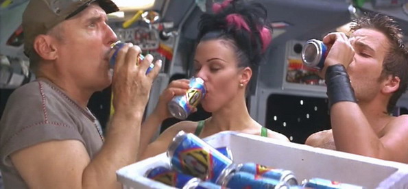 Décrit à l’époque par certains médias comme un croisement entre La Guerre des Etoiles, Predator et Hook ou la Revanche du Capitaine Crochet, oui, rien que ça, Space Truckers est en fait un film très étrange. Non pas dans ce qu’il raconte, mais dans le sens où on ne sait pas réellement si le film est une parodie de Space Opera. La question se pose tout le long. Les deux premiers tiers du film pourraient le laisser penser, avec de nombreux effets comiques, des gags, des dialogues funs, et un ton dans l’ensemble très léger, mais son dernier tiers est bien plus noir, avec l’arrivée de robots ultra violents charcutant tout sur leur passage. Du coup, on se demande clairement : Est-ce vraiment une parodie et que le gros nombre de scènes nawak qui parcourent le film sont complètement assumées ? Où est-ce que le film est complètement premier degré, et à ce moment-là on pourra le ranger directement dans la catégorie des bons gros nanars involontaires ? J’avoue qu’après avoir rapidement fouillé le net à la recherche d’une interview ou autre du réalisateur, sans succès, la question reste sans réponse. Mais une chose est sûre, c’est que cette série B à 25M$US de budget (oui, tout de même) est à prendre comme un popcorn movie et rien d’autre. Car sur ce terrain-là, il réussit pas mal son pari.