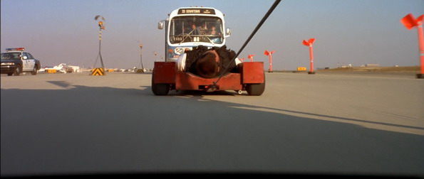 Alors pourquoi 25 ans après, Speed premier du nom est toujours aussi efficace ? Difficile de dire si c’est la nostalgie qui parle ou si le film a réellement bien vieilli. Mais quoi qu’il en soit, alors qu’on l’a déjà vu plusieurs fois, on reste scotché devant son écran durant ces 1h50 d’action, de suspense, de tension, de rebondissements. Il est clair qu’en termes de ficelles scénaristiques, Speed n’invente strictement rien, ni même d’ailleurs en ce qui concerne ses mécaniques pour faire monter la pression. Mais pourtant il nous tient en haleine tout du long et ne laisse que peu de répit au spectateur qui a, une fois de plus, envie de voir le gentil flic sauver les otages des griffes du grand méchant diabolique qui a envie de les réduire en petits morceaux. Speed sent la tôle froissée, la poudre et les pneus qui crissent. Il n’y a pas à chier, de vrais carambolages avec des vraies voitures qui se cartouchent, ou un vrai avion qui explose, ça a quand même une autre gueule quand c’est réel que quand c’est en CGI. Pour sa première réalisation, Jan de Bont s’en sort clairement avec les honneurs et nous livre ici une œuvre culte en matière de film d’action, épaulé par un casting qui va donner de sa personne (Keanu Reeves réalise une grande partie de ses cascades lui-même). Peu importe que le divertissement soit au final assez primaire et que je m’avère être sans doute de mauvaise foi (car oui, le film a ses défauts que je n’ai pas envie de citer), nous sommes ici dans l’efficacité pure et dure, avec des scènes d’actions lisibles. Et que dire de la musique de Mark Mancina (Bad Boys, True Romance, Les Ailes de l’Enfer), elle est juste excellente.