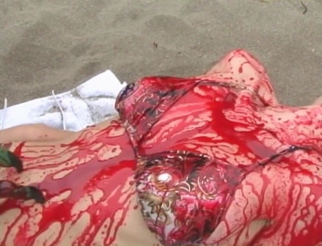 Mais Splatter Beach est avant tout un film de monstre. De ce côté là, ça ne marche pas par contre. Même un montage assez habile aura du mal à camoufler cet homme portant un costume ridicule et ne parvenant pas à laisser de traces sur ces victimes autre que des giclées de sang. Même si le film ne se fait pas sérieux, comme le monstre attaque de plus en plus souvent plus le film avance, l’intérêt retombe, et la qualité franchement mauvaise de la mise en scène et de la photographie ne peuvent pas être pardonnées sur la durée. Splatter Beach nous laisse donc sur une impression mitigée. Nous savions que le film ne serait bon, mais malgré tout, le scénario parvient à aller suffisamment vite pour ne pas ennuyer, mais son côté parodique et donc peut sérieux n’excuse pas tout, et le spectacle proposé devient lassant sur la fin. Ce qui est dommage puisque c’est là qu’Erin Brown est la plus présente. Bref, on aura vu pire, mais Splatter Beach ressemble bien trop souvent à un petit film amateur tourné à l’arrache entre potes. Ce qu’il doit être dans le fond, pour être tourné en 2 jours et demi.