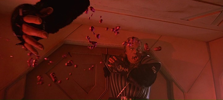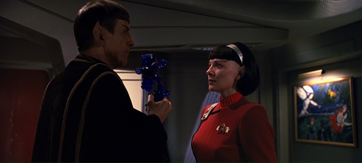 Dans ce sixième opus donc, nommé Terre Inconnue, Spock envoie l’Enterprise et son équipage, pour beaucoup à trois mois de la retraite, pour une mission d’escorte d’un général Klingon alors que la paix se profile pour une fois à l’horizon. Mais malheureusement pour le capitaine Kirk et son équipage, ils tombent dans une piège, et alors que le général (joué par David Warner, qui avait déjà un autre petit rôle dans le volet précédent) est assassiné, Kirk et le docteur McCoy sont capturés et accusés du meurtre. Et après trois opus allant du moyen au mauvais, Star Trek trouve dans ce nouvel opus un équilibre salvateur et surtout inattendu, un mix parfait entre ses thématiques qui semblent d’ailleurs plus poussées qu’auparavant, son humour, mais également son suspense et quelques séquences spectaculaires que les avancées technologiques permettent doucement, même si la Paramount n’offre toujours pas un budget allant avec les ambitions du projet. Si d’ailleurs la formule Star Trek contient toujours dans ce film les éléments habituels, ils semblent bien mieux dosés. L’humour est totalement en arrière plan, et le fond se fait plus sombre, plus intelligent également (pas de baleine à sauver comme dans le 4). Dès le début, avec Kirk qui se retrouve à sympathiser avec les Klingons lors d’un repas lourds de silences, de sous entendus et de malaise, la sauce prend immédiatement. Surtout qu’outre le casting original, dont le vieillissement, totalement justifié par l’intrigue passe à merveille, on retrouve des seconds rôles forts sympathiques. Outre David Warner en général Klingon, on trouve en Vulcain la charmante Kim Cattrall (Les Aventures de Jack Burton, Sex & the City) mais également Christopher Plummer en méchant du film. Du très bon boulot donc, avant que le film, passé quelques séquences spectaculaires (malgré quelques effets discutables), ne prenne un tournant plus politique (manipulation, tribunal, prison) mais tout en parvenant à garder un côté passionnant et un suspense bien foutu.