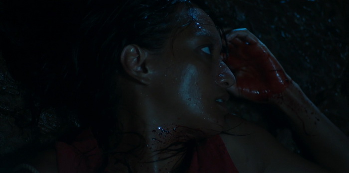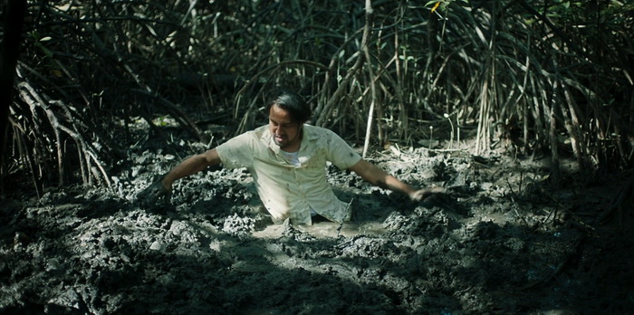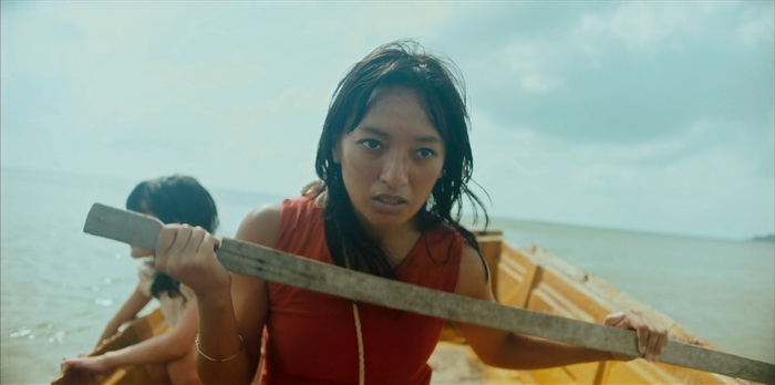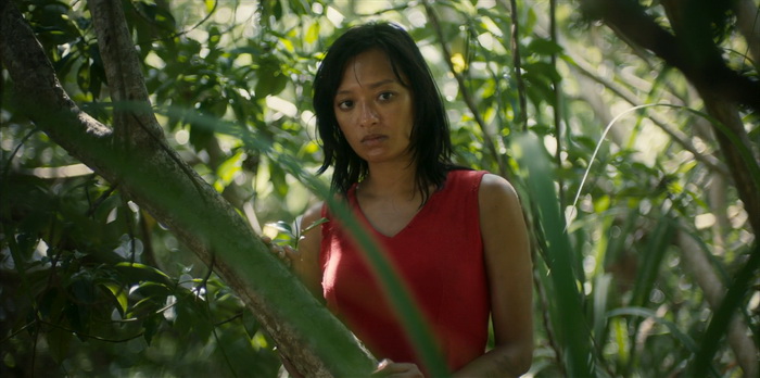 Stone Turtle est un film dont les thématiques centrales sont le viol et la vengeance. Dès la scène d’introduction avec ce féminicide à coup de grosse pierre, on sait que l’horreur sera inévitable et chaque boucle temporelle finira en violence sanglante. On a même l’impression que c’est cette violence qui relance la boucle temporelle avec comme idée qu’on ne peut pas échapper à son destin. Cette violence est rugueuse et certaines scènes font réellement mal (l’oursin) même si à aucun moment le réalisateur ne cherche à la styliser à l’inverse de son film, d’une vraie beauté plastique. Se déroulant quasi exclusivement en extérieur, Stone Turtle tire parti du paysage sauvage de cette petite île où tous les styles de décors sont présents : plages de sable fin, forêts denses, marais et autres falaises rocheuses. Des paysages d’une grande beauté mais où chaque recoin peut être dangereux, à l’instar de ce qu’il s’y passe. La photographie est superbe et la mise en scène de Woo Ming Jin, à la fois simple est millimétrée, sait parfaitement comment capter l’attention du spectateur. Le choix de cette robe rouge que porte le personnage de Zahara n’est pas anodin et capte immédiatement le regard, ce rouge qui est la couleur du danger dans la nature. La performance d’Asmara Abigail est d’ailleurs assez époustouflante, représentant à la fois le danger par sa robe rouge et son regard, méfiant, froid, mais également cette pureté absolue, doublée d’une certaine beauté, qu’on finit par deviner souillée par le patriarcat, renvoyant à la première scène âpre du film. Malgré la violence et les thématiques lourdes abordées, il se dégage du film une atmosphère mystique, parfois presque onirique, donnant à Stone Turtle un côté hors du temps et renforçant encore plus ce sentiment d’assister à une fable. Une fable belle et sauvage pour les adultes et qui nous donne l’impression de vivre un vrai moment de cinéma, certes imparfait mais ô combien hypnotique.