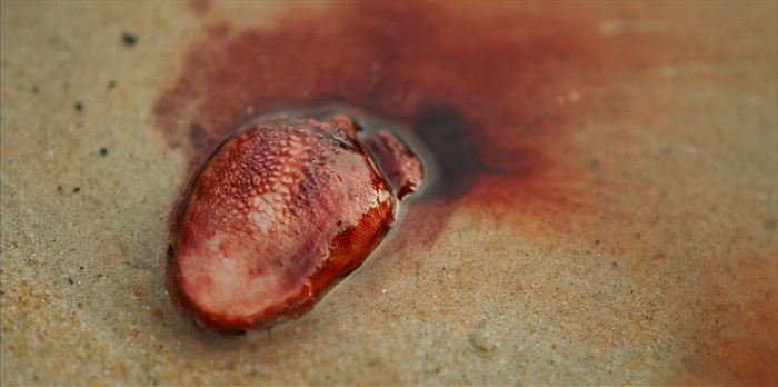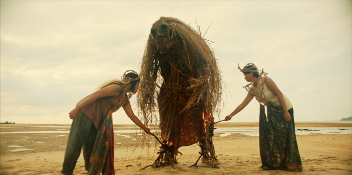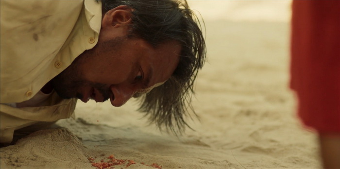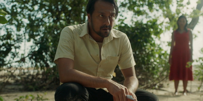 Le pitch de départ de Stone Turtle est assez simple, une histoire de vengeance somme tout assez basique, avec peu de personnages, se passant sur une île presque déserte. On y suit Zahara, qui s’occupe de la fille de sa sœur tuée par son mari. Elle vit modestement du commerce illégal d’œufs de tortues. Un jour, débarque sur son île Samad, un chercheur en université prétendant étudier un certain type de tortues qui ne se reproduirait que sur cette île. Dès lors, la vie de Zahara va prendre une tournure inattendue. Stone Turtle ne brille pas par ce qu’il nous raconte, mais plutôt par la façon dont il nous le raconte. Stone Turtle va utiliser le mécanisme de boucle temporelle et, à la 38ème minute, le film recommence. Quelques détails diffèrent mais notre héroïne a l’impression de déjà avoir vécu ce jour. Et puis ça recommence une troisième fois, avec de nouvelles différences et, petit à petit, les pièces du puzzle se mettent en place pour le spectateur. L’ensemble est entrecoupé de jolies séquences animées nous contant une légende, celle d’une tortue mâle qui est séparée de son véritable amour pendant une tempête. Très rapidement, on comprend que personne n’est qui il se prétend être. Alors que dans la première boucle temporelle, Zahara est celle qui lance l’agression contre Samad, on se rend compte dès la deuxième boucle que Samad y est peut-être pour quelque chose à cet excès de violence de Zahara. Il y a un point de départ à tout ça, un point de départ qui nous sera bien entendu expliqué lors du dernier acte bien que, après visionnage, on se rend compte que le réalisateur avait laissé des indices ci et là. Même la jeune fillette n’est au final pas celle qu’on nous présente en début de film. Il est clair qu’entre la narration éclatée et les informations qui nous sont données petit à petit, Stone Turtle peut paraitre parfois assez désordonné, même parfois surchargé malgré son rythme assez lent, mais c’est aussi ce qui le rend réellement hypnotisant car on a envie de savoir où son scénario va nous amener.
