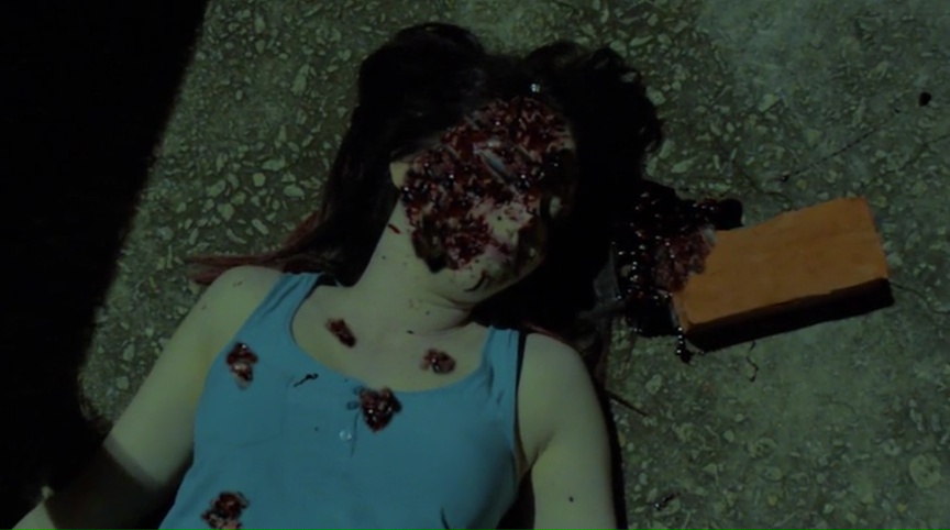 Oui simple, mais de quoi pouvoir divertir sur 1h40. Et quitte à continuer sur les bons points, que dire de l’interprétation ? Si l’on sent chez certains une pointe d’hésitation, comme l’héroïne, jouée par Alicia Watson qui commence là sa carrière, ou Courtney Riggs (qui tient aussi son tout premier rôle), elle est en tout point potable, même si c’est clairement Erin Brown qui tire son épingle du jeu dans le rôle de la pouf du film, la grosse sal***, n’hésitant pas à arracher un œil d’une bargirl qu’elle n’aime pas, à trancher des jugulaires en forêt, et à se servir de godemiché en ceinture pour punir les mauvais clients. La demoiselle se lâche totalement et livre même une excellente prestation ici. Malheureusement, les bons points s’arrêtent là, car si dans les faits, Strip Club Massacre bénéficie d’un casting investi et d’un scénario plus développé que la moyenne pour ce genre de production, le bas budget de la production n’a pas du aller dans les domaines adéquats tant le résultat à l’écran est bancal. Bob Clark, qui signe son premier film et écrit en parti le scénario par exemple, livre une mise en scène peu inspirée, se contentant de filmer le plus simplement du monde ce qui se passe, et basta, rien de plus. Certes, il ne fallait pas attendre des miracles, mais alors que l’on distingue quelques beaux plans (j’aurais été surpris par la scène de nuit en forêt, avec un magnifique plan de lune puis un éclairage plutôt joli pour le dialogue qui suit), le reste est quasi une catastrophe. On ne compte en effet plus le nombre de plans flous, peu éclairés et nous offrant aussi un magnifique grain numérique (du bruit donc comme on l’appelle) sur de nombreuses textures en arrière plan, des tremblements.
