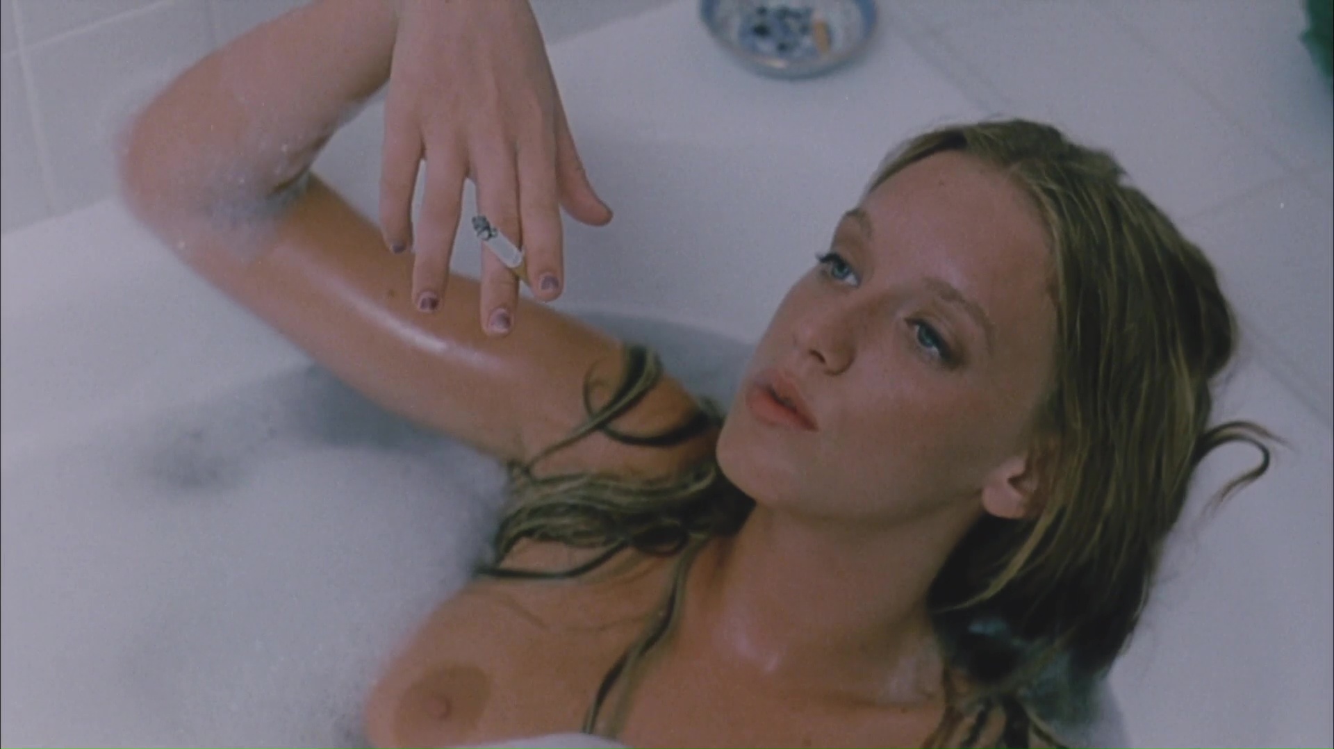 Sur le papier, de base, Swimming Pool ne propose rien de nouveau. L’histoire de cette écrivain (Charlotte Rampling) en panne d’inspiration n’est d’ailleurs pas sans rappeler de nombreux écrits de Stephen King. Mais Ozon a l’intelligence de ne pas traiter son sujet comme tout le monde. Non, nous n’allons pas voir les tourments de Charlotte Rampling, ou bien la façon dont cette jeune femme va sombrer dans la folie de l’écriture, loin de là. Car Swimming Pool nous parle de la dualité entre deux personnages forts. L’écrivain d’un côté donc, plus âgée, renfermée, qui aime le calme, la tranquillité, la création. Et de l’autre, la jeune femme (Ludivine Sagnier), sensuelle, séductrice avec absolument tous les hommes du village, disant clairement ce qu’elle pense. Deux personnages opposés, qui vont pourtant devoir vivre ensembles et se supporter dans cette villa avec piscine pendant tout le métrage. De multiples questions arrivent aux spectateurs durant cette longue présentation, cette longue mise en bouche. On essaye de deviner où tout cela va nous mener, on essaye de comprendre la psychologie de la jeune femme, Julie, mais on échoue souvent. Car finalement, le titre du métrage nous en dit beaucoup. La personnalité de son personnage semble clair et limpide, comme l’eau de la piscine, mais si on essaye d’y plonger, on se rend compte que c’est beaucoup plus profond que prévu. La première heure nous ballade en eaux troubles justement, puisque l’on ne voit pas les tenants et aboutissants de l’histoire, autre que la dualité entre une écrivain plus âgée et sage et son opposée, plus jeune, couchant à droite et à gauche et profitant de la vie au maximum.