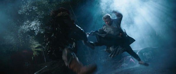 La partie « fantastique » se situe essentiellement sur la première moitié du film. Un combat contre des gyonsi et un contre des fantômes. Dans la deuxième, ce n’est quasiment plus évoqué vu que le subterfuge est vite révélé. Du coup, la plupart du temps, les combats se déroulent entre des adversaires humains. Dans tous les cas, Ricky Lau va tout mettre en œuvre pour que ses scènes d’action soient dans le style de Hong Kong, et force est de constater que cela fonctionne. Bien entendu, nous ne sommes pas du niveau de ce que l’ex-colonie a pu nous offrir martialement. Mais, sincèrement, ça fait plaisir à voir. Les combats sont dynamiques, parfois visuellement très esthétiques, et les chorégraphies sont plutôt recherchées. Dommage que le montage soit parfois un peu trop cut et que la caméra soit parfois un peu trop mobile (afin de donner encore plus de mouvement aux mouvements). Néanmoins, ça castagne vraiment beaucoup, c’est très généreux à ce niveau-là, avec en guise de final une longue succession de fights qui font plaisir à voir tant les combats de fin sont souvent vite expédiés dans le cinéma martial chinois actuel. En termes de mise en scène, c’est très propre. D’entrée de jeu, on constate que le visuel est ultra soigné. Certains éléments de décors sonnent parfois un peu faux mais dans l’ensemble, la réalisation de Ricky Lau est carrée et on est content de voir que ce « revival » n’a pas été expédié à la va-vite. Il n’abuse pas des CGI inutiles là où d’autres seraient allés dans la surenchère (et heureusement car le peu qu’il y a, ne sont pas des plus réussis). Autre point positif pour les amateurs de vieilleries HK des années 80, la présence de Norman Chu (Duel to the Death, The Sword), méchant emblématique du cinéma de Hong Kong, qui malgré les années qui passent continue d’en imposer par son charisme. Notons également un cameo de Gabriel Wong (An Eternal Combat, Fight Back to School), autre tête connue des amateurs.