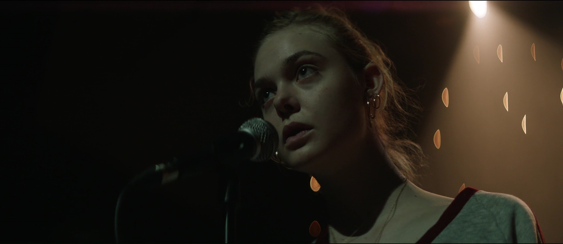 Si la prise de risque dans son scénario est proche du néant, reprenant tous les codes du dit genre comme cité plus haut, niveau mise en scène, l’acteur qui était apparu dans Syriana, The Social Network ou encore Horns se défend, et même plutôt bien. Dés les premiers instants, on trouve une mise en scène dynamique, des plans assez beaux et bien cadrés, des éclairages très classes et usant beaucoup de néon (oui je sais, mon péché mignon) dans les scènes intérieures, mais utilisant alors beaucoup plus des couleurs douces et naturelles en extérieur, le tout souvent avec un montage qui sait prendre son temps et qui ne va pas aller au sur découpage, même lors des séquences musicales. Visuellement et au niveau sonore, il n’aura fallut que quelques instants à Teen Spirit pour savoir me conquérir, alors si en plus on me met sur le devant de la scène la très jolie et surtout très talentueuse et simple Elle Fanning, le film partait déjà avec mon vote de confidence. Car on pourra dire ce que l’on veut, mais Elle Fanning fait souvent des choix de carrière surprenants, et des choix qui fonctionnent. Malgré quelques gros budgets qui ne m’intéressent strictement pas (Maléfique et sa suite), elle aura tout de même dans sa carrière tournée pour Inarritu dans Babel alors qu’elle n’était qu’un enfant, pour Sofia Coppola (le somnifère qu’était Somewhere) mais aussi pour son père avec le controversé Twixt, pour J.J. Abrahams avec Super 8, pour Refn avec The néon démon, et aura même jouée Mary Shelley dans le film du même nom. Une carrière variée, pleine d’artistes différents et de rôles souvent très différents les uns des autres. Encore un bon point, elle est ici radieuse, simple et naturelle, et surtout montre une facette de son talent que je ne connaissais pas encore, à savoir le chant. Avouez que ça aurait été dommage en 2019 de faire un film basé sur la musique et le chant, et d’avoir une actrice chantant mal, ou doublée par une autre artiste. Ce n’est pas le cas, et je peux le dire, Elle Fanning a une sacrée voix !