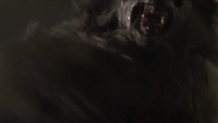 Je pensais qu’en 2024 avec la sortie par Lionsgate de Amityville Where the Echo Lives que le studio continuait juste à… faire de la merde, comme ce fut le cas tout le long de l’année (ah Borderlands, ah The Crow). Sauf que, voilà t’y pas qu’en tombant sur un métrage de 2021 nommé The Amityville Moon, je vois un gros Lionsgate Presents en lançant le film. Récidivistes ! Alors, j’aurais aimé vous dire, comme j’ai vu The Amityville Moon après, qu’il y a du progrès, mais comme le film date en fait d’avant. Bref, ici, pas de maison hantée. Ni même de paranormal. Mais ça se déroule bien dans la ville d’Amityville, comme on peut le voir sur des panneaux sur l’autoroute, diverses affiches, les badges de la police. Oui, ça paraît rien, mais au moins, ça veut dire que le film a été conçu ainsi, il se déroule à Amityville même si c’est un film de loup-garou et non de maison hantée, et ce n’est pas un film random acheté par Lionsgate qui aurait changé le titre pour son exploitation vidéo. Et dans le domaine des très nombreux films estampillés Amityville, il est loin d’être le pire. Sans parvenir à être bon pour autant. Ici donc, nous suivons un flic qui après une bavure, se retrouve sur une affaire mineure, à savoir enquêter sur deux disparues, des fugueuses. Qui ont fuies donc l’église qui leur sert de maison, pour leur réhabilitation. Mais comme la scène d’ouverture nous le fait comprendre, l’une d’elle n’a pas disparue, elle est juste morte, attaquée par une grosse boule de poil qu’on appellera un loup-garou. D’entrée de jeu, si le métrage, comme tous les autres, apparaît souvent comme peu friqué, avec son éclairage très peu esthétique, sa mise en scène qui n’essaye jamais rien, et bien il montre au moins un certain sérieux.