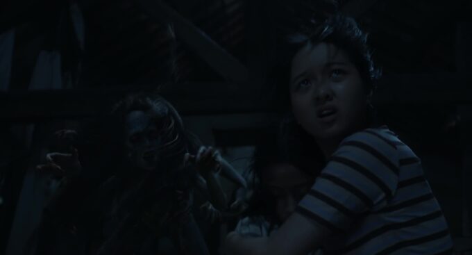 The Ancestral en tout cas ne va pas bousculer nos acquis et nos habitudes. On aura du jumpscares visuel, du jumpscares auditif, une maison coupée du reste du monde, une grand-mère flippante qui apparaît quand le scénario le décide, des ombres furtives et silencieuses en arrière-plan, un père qui ne croit jamais ses enfants car les esprits ça n’existe pas et j’en passe. Pourtant, même avec ces clichés par paquet de 12, il y avait malgré tout du potentiel, puisque le film décide de traiter d’un sujet bien réel, à savoir la paralysie du sommeil, qui dans le cas qui nous intéresse, touche une petite fille, Yen, qui part dans une maison familiale avec son père et sa grande sœur après un drame qui l’aura marqué. Le problème, c’est que le film se prend méchamment les pieds dans le tapis sur deux éléments pourtant si importants dans le genre. Le premier élément, je le citais d’entrée de jeu, c’est la fameuse créature. Regardez-moi cette pochette, c’est la méga classe non ? Photoshop peut faire des miracles, car dans le film, c’est une autre histoire. Autant lorsque l’on doit voir une grand-mère terrifiante en plein jour, le film sait jouer sur les plans larges, les plans furtifs, et ça passe, mais lorsque le film se décide à montrer une créature terrifiante la nuit, quand notre jeune sœur dort, enfin, est victime de paralysie du sommeil, vous aurez au choix droit à la silhouette floue qui s’amuse à passer de gauche à droite de l’écran sans raison, dans le meilleur des cas, ou l’incrustation de CGI tout simplement abominables dans le pire des cas.