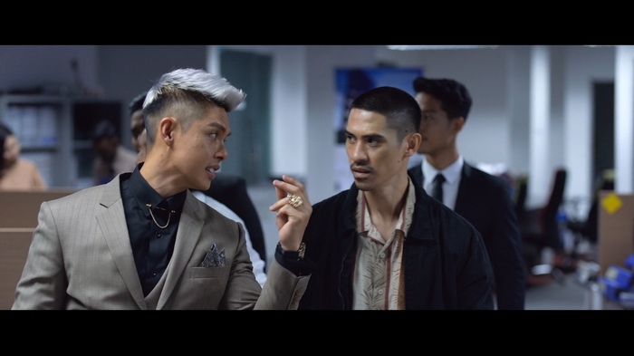 Mais finalement tout ça on s’en fout un peu. Bien sûr Ringo Lam arrivait à faire des films à la fois violents, efficaces, bien écrits, bien joués, qui te prenaient aux tripes, mais quand on a vu a vu Paskal et Wira de Adrien Teh, on sait à quoi s’attendre ou plutôt à quoi ne pas s’attendre. Donc j’étais venu chercher un divertissement dans la lignée de Wira et c’est ce que j’ai eu. Dès la première grosse scène de baston dans les couloirs d’un bordel, le résultat est plutôt convaincant. Le personnage de l’assistant joué par le très athlétique et véritable artiste martial Hairul Azreen (déjà héros de Wira et Paskal) fait le job. Il défonce donc une dizaine de gars à la barre de fer et au couteau, ce n’est pas trop mal réalisé et chorégraphié, assez sauvage, c’est finalement ce que j’étais venu voir. Son personnage qu’on découvre peu à peu comme étant légèrement psychopathe est bien rigolo aussi, avec son style de chanteur pop, sa teinture blonde et son ricanement débile. Le film est d’ailleurs un peu conçu comme un buddy movie (l’humour en moins). On a deux héros opposés qui font équipe, l’un est faible et ne sait pas se battre, l’autre un fou furieux qui ne demande qu’à briser des os et que la violence amuse. Les autres scènes d’action sont elle aussi pas trop mal. On a une course poursuite en voiture elle aussi pas trop mal, un gunfight avec des bruits de détonation et des impacts de balles en CGI un peu cheap mais qui fait quand même le job et un contre un à mains nues assez long dans un style penchak silat. Bref, sans faire d’étincelles, tout dans ce The Assistant est pas mal. Pas extraordinaire, mais pas mal non plus. Et puis vers la fin du film arrive un twist surprenant que pour ma part je n’ai pas du tout vu venir. Bien que ce ne soit pas le twist du siècle et qu’il soit pompé sur un grand film hollywoodien que je ne citerai pas pour ne pas vous gâcher le plaisir, eh bien il rajoute une dose de fun à la bobine, c’est un peu la cerise sur le gâteau. La toute fin virant un peu au grand n’importe quoi et au grotesque n’empêche pas Adrien Teh de remplir son contrat. L’objectif est atteint, The Assistant est la série B violente et efficace que je voulais voir.