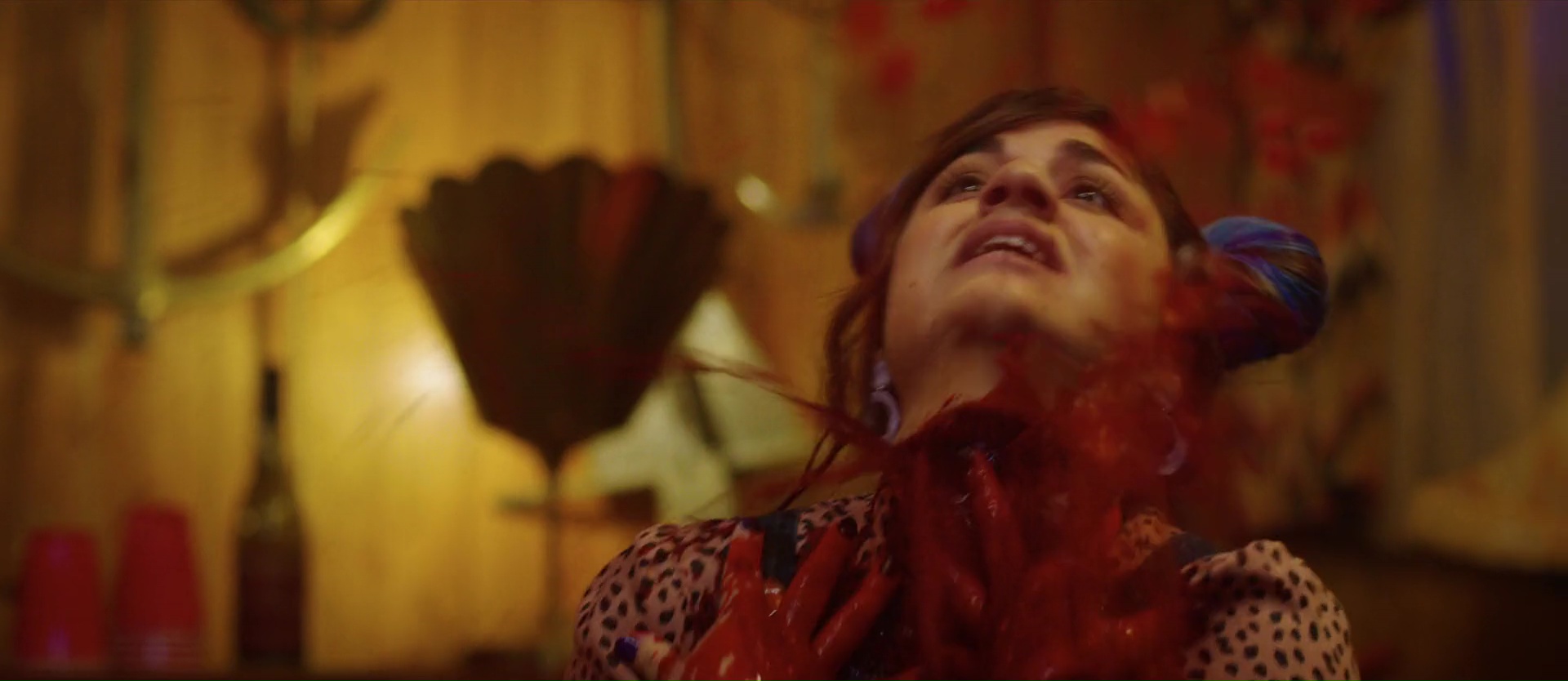Seule nouveauté, une nouvelle galerie de personnages entourant les principaux, avec Diego, Archie, ou encore Phoebe. Sauf qu’en voulant ne jamais bousculer la formule et coller au plus près au premier film, cette suite nommée Killer Queen tombe dans son propre piège. À savoir celui de la copie conforme, sans âme, qui ne surprend pas, et donc qui n’amuse pas vraiment. Triste à dire, mais la première partie, malgré son manque de surprise, reste la plus réussie. Elle introduit de nouveaux personnages, dont Phoebe donc, qui apportent un peu de sang frais (sans jeu de mot pour une fois), et le côté teen movie relativement léger fonctionne à certains moments, comme lorsque les parents de Cole, notamment le père, se retrouvent sur le devant de la scène. Mais passé ces vingt minutes légères, le film n’effectue non pas un 180 degrés mais une marche arrière, anéantissant tout ce qui aurait pu être nouveau, en faisant revenir d’entre les morts tous les personnages du premier film. Le problème, enfin, en réalité non, cela amène deux principaux problèmes dans le métrage. Le premier, c’est que le métrage relègue au second plan tout ce qui aurait pu être intéressant, à savoir donc ses nouveaux personnages, qui à partir de là ne serviront strictement à rien et seront rares à l’écran. Car le casting original vient alors leur voler la vedette. Le second souci, c’est que le retour du casting ramène également tout ce qui faisait l’originalité du premier film… l’originalité en moins donc. Tous les gags reviennent, de dialogue, de visuel, mais également tous les tics visuels. Les WTF et autres inscriptions à l’écran seront tous de retour, dans des situations identiques. Pire, les personnages connaîtront pour la plupart un sort identique au premier film, si bien qu’après deux morts, on sait très bien ce qui attend les autres personnages et plus rien ne vient surprendre. Pendant un peu plus d’une heure, on a donc là un remake déguisé gentiment gore du premier film, qui ne semble absolument jamais inspiré.