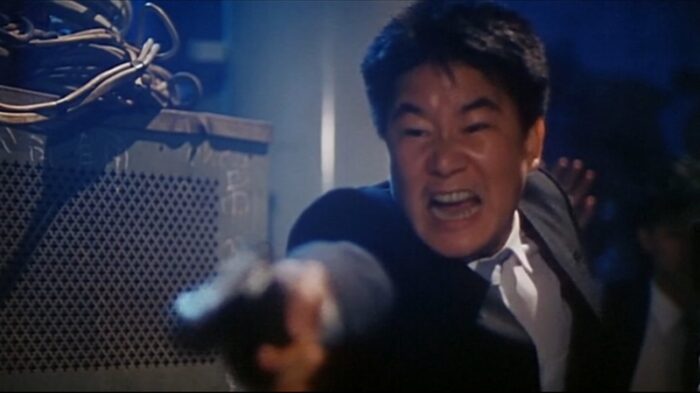 La mise en scène des gunfights se montre très hétérogène et alors que certaines peuvent tout à fait se montrer hystériques, d’autres font beaucoup plus penser au travail actuel de Johnnie To, avec un travail sur les éléments statiques et les ralentis laissant une grande place à la tension. Le gunfight dans l’hôpital (et oui, encore un) est à l’opposé de cette tendance et se montre beaucoup moins calme. Cette séquence d’action frénétique fait place à des mouvements de caméra à vous tordre le cou (ou à vous retourner un oeil) pour peu que vous ne soyez pas épileptique.