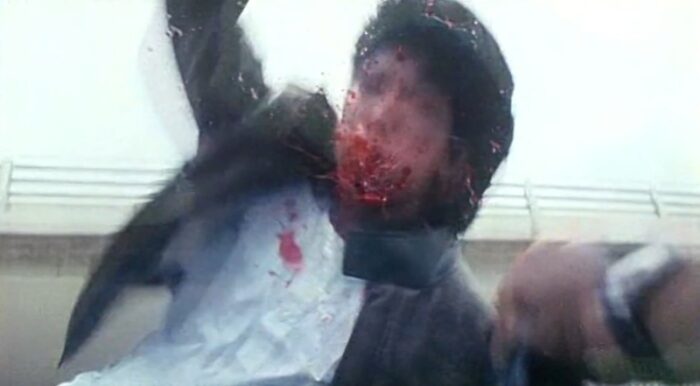 Il est maintenant connu de tous que le film, dont la réalisation a été entamée par Andrew Kam, s’est poursuivit avec Johnnie To à la caméra mais avec un montage final comprenant des prises de vues shootées par Tsui Hark. Un tel mélange de talents ne pouvait visiblement pas créer une oeuvre homogène et en effet le film fait preuve d’une certaine émulsion visuelle qui fait finalement tout son intérêt. Les scènes d’actions au départ plutôt classiques sont ainsi truffées d’inserts gores virant parfois au grand guignolesque. Cette manière de verser dans l’ultra violence donne ainsi une teinte graphique excessive mais attachante, souvenir d’une époque ou le cinéma se montrait beaucoup plus artisanal. Et en parlant de teinte graphique, il est bon de noter le travail fait sur les éclairages, très beaux, notamment lors d’une scène dans une ruelle (ou plus probablement dans un studio) où tous les angles sont braqués par des lumières rouges ou bleues.