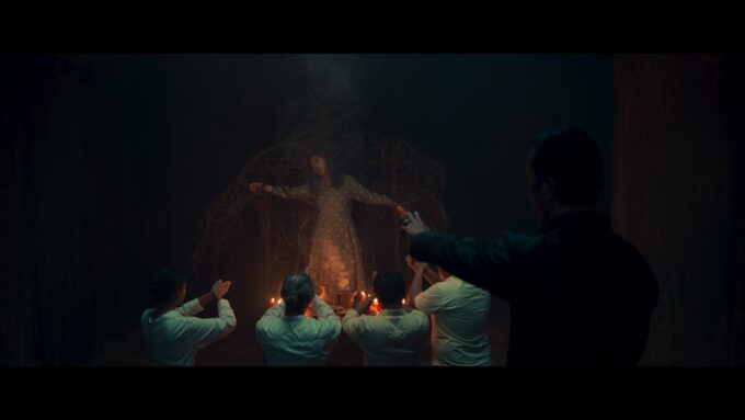 Le cinéma Indonésien, surtout horrifique, est plus vivace que jamais. Tant mieux pour ceux qui aiment. Et ce même si souvent, quand on se lance dans un film sans trop savoir grand-chose, c’est quitte ou double. Pemukiman Setan, ou The Devil’s Lair à l’international, c’est dans le fond le film qui a du mal à se différencier des autres. Que l’on regarde sa pochette, son titre original ou international, ça sent le déjà vu. Son réalisateur, et co-scénariste, Charles Gozali, est inconnu au bataillon sauf probablement pour les plus grands connaisseurs de ce cinéma. Pas de grands noms non plus au casting, si ce n’est que Maudy Effrosina, tenant le rôle principal, tient le rôle principal du nouveau film de Kimo Stamboel. Qu’importe, il faut se lancer. 1h35 après, et bien The Devil’s Lair, c’était bien cool. D’entrée de jeu, l’intrigue ne va pas chercher dans l’originalité, puisque l’on est clairement ici dans un mélange peu subtil entre deux métrages à la popularité grandissante. Evil Dead d’un côté, auquel l’Indonésie a déjà rendu hommage récemment grâce à Timo Tjahjanto et ses deux May the Devil Take You. Et Don’t Breathe de l’autre. Fait amusant dans le fond, puisqu’autant le dernier cité que le premier qui a eu droit à son remake en 2013 sont signés Fede Alvarez. Et qu’autant en Amérique qu’en Indonésie, et bien, ça aime bien faire mal à ses personnages. Ici donc, c’est Aline qui rejoint trois amis pour se rendre dans une maison isolée et voler ni vu ni connu quelques possibles objets de valeur. Bien évidemment, ça tourne mal, avec une découverte dans la cave d’une jeune femme attachée, qu’ils vont s’empresser de libérer. Oui, c’est 100% du Don’t Breathe, et le métrage ne s’en cache même pas. Il se fait d’ailleurs tout aussi appliqué visuellement, bien que tentant sans doute moins de choses.