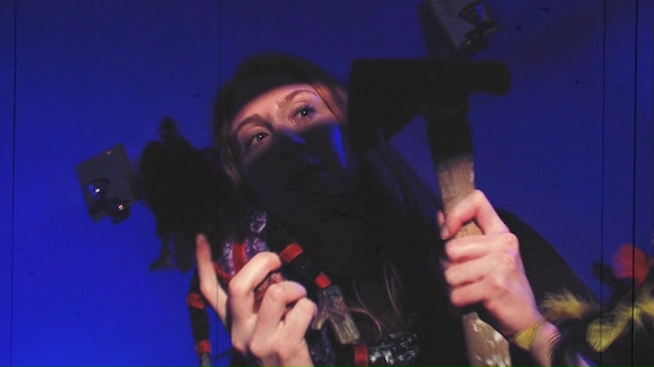 Cet aspect est donc plutôt réussit. Qu’en est-il du reste, de son mélange d’humour, de gore et de sexe ? Le film commence fort avec une scène gore, d’emblée, puis délaisse quelque peu l’horreur pour se focaliser sur autre chose : le sexe. Alors certes, l’humour est bel et bien présent et fonctionne parfois très bien (« You have some biiiig disco balls »), avec un homme à femme dans le rôle principal et une star du porno dans l’autre rôle principal, cela va de soit, mais le métrage contient malgré tout un peu trop de sexe. Et oui, c’est moi qui dit ça ! Soyons clair, ces scènes ne sont pas désagréables, loin de là, et Richard Griffin soigne encore une fois sa mise en scène, n’ayant d’ailleurs que très peu recours au numérique ce coup-ci (un poil sur le final et basta), mais on a parfois l’impression que les scènes durent et empêchent donc l’histoire d’évoluer. Histoire très simple en passant, une simple vengeance à coup de magie vaudou. Surtout que malgré le petit budget, dés que l’horreur débarque, Richard Griffin se fait clairement plaisir et fait gicler le sang comme il se doit, en mode XXL.