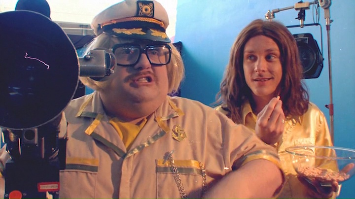 Après avoir rendu hommage avec panache aux films d’exploitation avec ses nonnes vengeresses dans le très fun Nun of That en 2008, Richard Griffin rempile en 2011 avec un autre hommage : The Disco Exorcist. Oui, cette fois-ci, il s’agît de magie vaudou, le tout dans un univers disco venue tout droit des années 70. On retrouve un peu la même équipe devant et derrière la caméra, avec Ted Marr à la production, Richard Griffin donc à la mise en scène, Michael Reed, Sarah Nicklin et Ruth Sullivan devant la caméra. Est-ce que l’hommage fonctionne encore malgré un budget un peu plus bas (on passe d’environ 75 000 à environ 20 000 dollars) ? L’hommage fonctionne, mais la sauce prend parfois moins malgré tout. Car si Nun of That mélangeait malgré des faiblesses évidentes plutôt judicieusement le gore (bricolé et fun), les situations connes, les personnages fous, le côté coquin (une rapide scène lesbienne) et de l’humour (auquel on adhère ou pas), The Disco Exorcist fait clairement le choix de s’orienter plus vers certains aspects et d’en laisser d’autres un peu de côté. C’est donc l’ambiance années 70 qui est dans un premier temps mise en avant. Avec ses éclairages colorés, ses plans filmés en Super 8, son grain et rayures sur le film, les costumes, les coiffures. Ça fonctionne, et les scènes de danse que l’on pourrait attendre sont au final peu nombreuses. Dans le plus pur aspect Grindhouse, le film jouera même à deux reprises le coup de la bobine manquante.