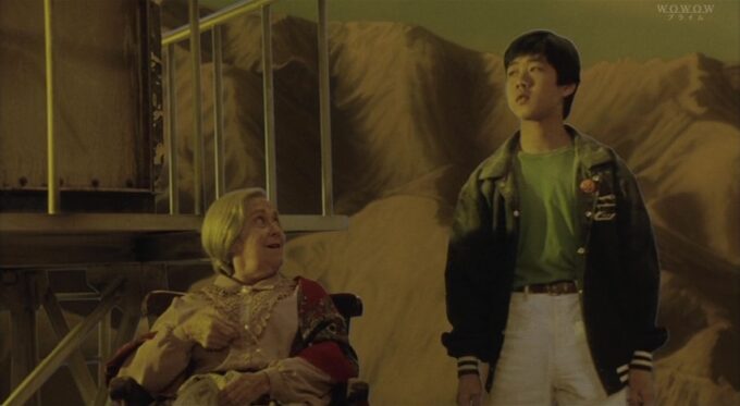 Comme si l’on naviguait en permanence entre comédie, horreur, mélodrama, le tout sur un ton résolument enfantin et tout public, et n’hésite même parfois pas à verser dans un style proche de la comédie musicale psychédélique. Et puis, il y a cette envie de mixer des acteurs Japonais et Américains, dont pas mal d’amateurs, et de faire parler l’ensemble du casting assez souvent dans un anglais approximatif qui, dans le feu de l’action, dans l’urgence, devient parfois gênant et ridicule. Niveau casting, ça coince, surtout avec l’envie du film de toucher un large public, et notamment, un public jeune. On aura après tout droit à quelques dialogues assez gratinés, que l’on ne sait jamais s’il faut prendre au premier ou second degré. Quand la prof de notre jeune héros se met à pleurer et que celui-ci lui lance le plus sérieusement du monde « tes larmes sont plus belles qu’un lac », je ne sais pas comment le prendre moi. Tentative de rendre un moment poétique et surréaliste, sérieux raté à toute épreuve ou volontaire second degré ? On passera par contre sur le budget du film, sans doute très bas, ce qui rend cette école transportée dans le futur désertique avec tous ces étudiants étonnement vide (oui basiquement, il n’y aura finalement que les acteurs présents dans la classe où notre héros se trouve et point barre). Car malgré son bas budget, Ôbayashi se fait plaisir, met des monstres dans tous les coins, utilise encore des effets totalement psychédéliques comme dans Hausu, mais le ton général du film lui semble inoffensif, bon enfant, enfantin même. Et il faut l’avouer, le décalage entre le propos, le ton et les idées est parfois énorme. La déception ne peut qu’être présente, mais The Drifting Classroom a néanmoins quelques atouts, et quelques scènes qui marqueront la rétine des rares spectateurs se laissant tenter. Mais ça aurait pu être tellement mieux, tellement plus fort, tellement plus fou, surtout avec l’association Umezu et Ôbayashi.